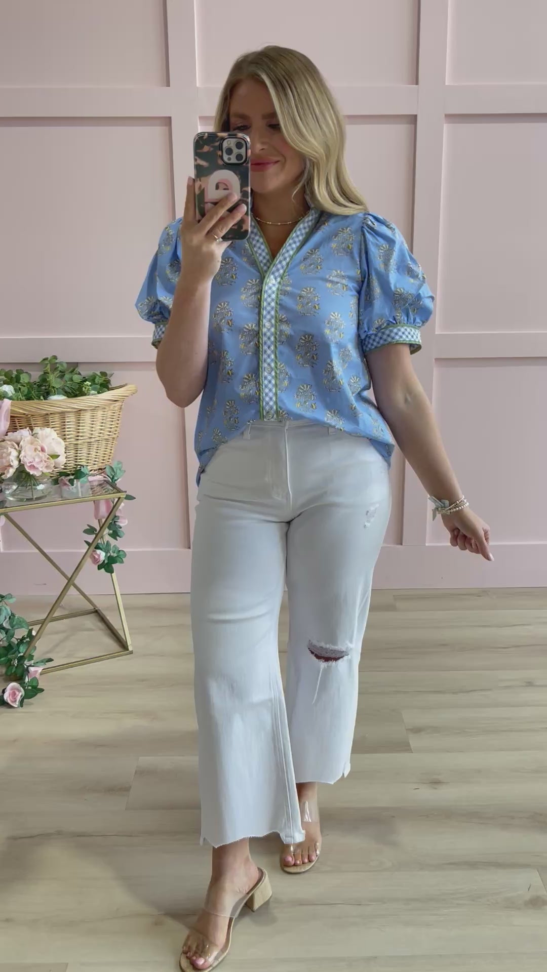 Introducing the Connie Floral Printed Button Down Top by Entro—your new go-to for effortless style! This charming short-sleeve top features a gorgeous floral print that brings spring vibes year-round. The split neckline adds a modern twist, while delicate textured trim and playful puff sleeves give it that perfect blend of sweet and chic. Button down the front for easy styling versatility. Whether you're dressing it up for brunch or keeping it casual, Connie is ready to make you feel confident and fabulous.