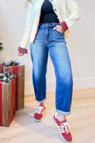 These Risen Cody Mid Rise Barrel Jeans bring a fun twist to your denim collection. With a dark wash and non-distressed finish, they keep things classic while the barrel shape adds playful volume. Medium rise and square front pockets give comfort and practical style that fits your vibe perfectly from day to night. Available from 0 to 3XL, these jeans are ready to join all your adventures in bold, confident style.