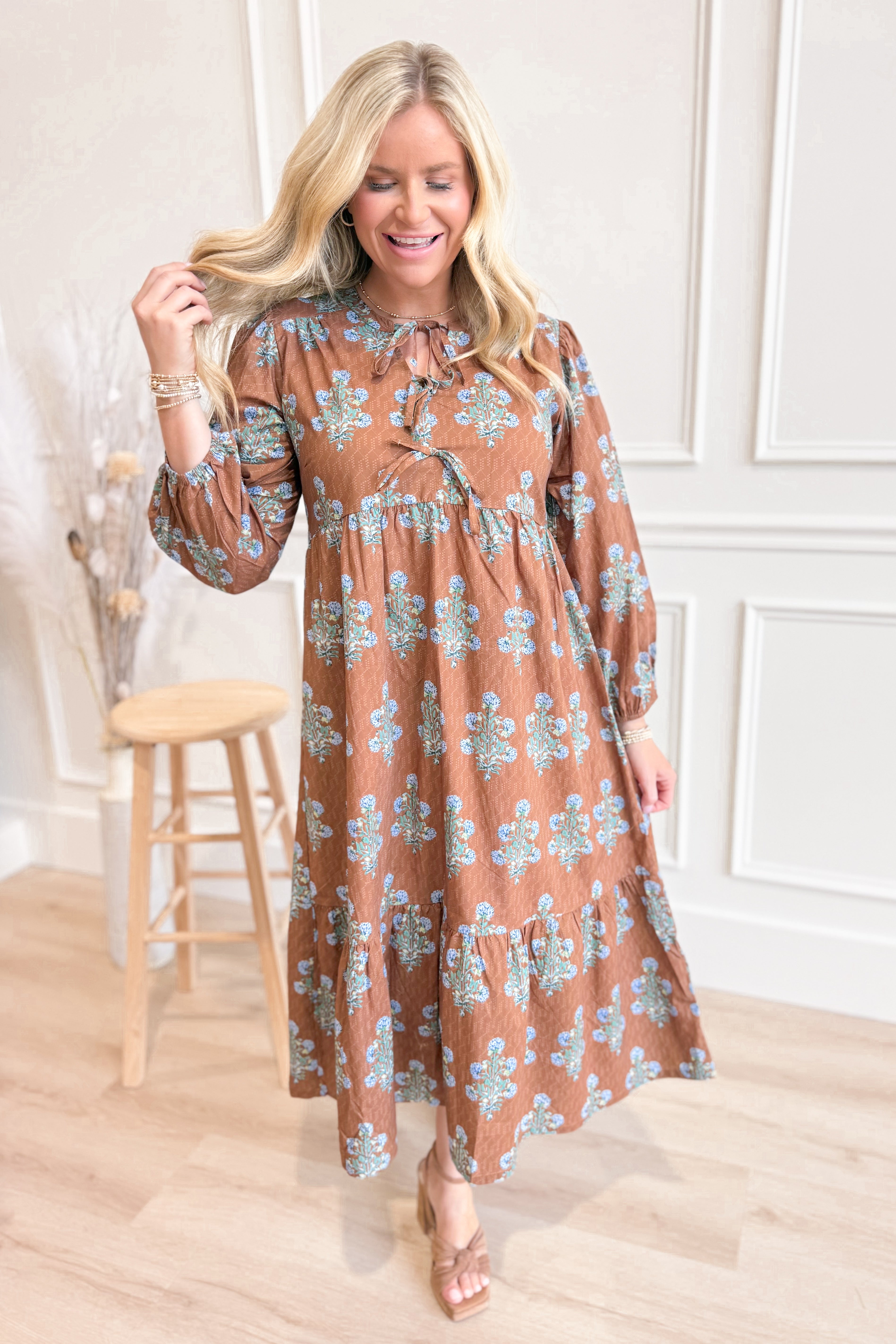 Embrace your playful side with the Chelsea Flower Printed Midi Dress by Umgee. Featuring a charming floral pattern, tiered skirt, and a flirty keyhole neckline, this long-sleeve midi dress offers a perfect blend of fun and elegance. Its flowing silhouette moves with you, making it ideal for sunny days or breezy evenings. Add a touch of whimsy to your wardrobe with this effortlessly stylish piece.