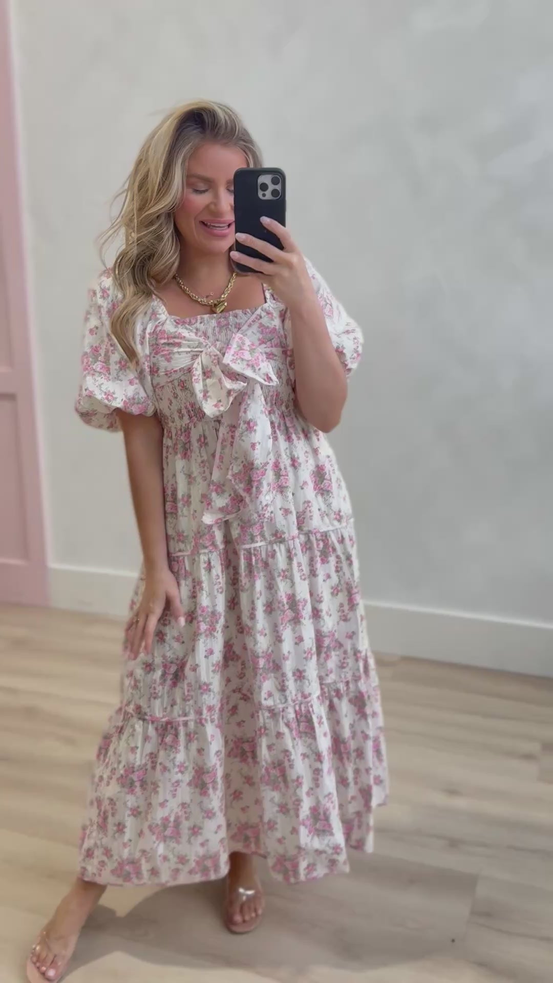 Twirl into spring with the Janie Gauze Floral Printed Dress by Peach Love! This charming piece features a delicate floral print that brings garden-fresh vibes to your everyday style. The square neckline and short sleeves offer a sweet, feminine touch, while the tiered silhouette creates effortless movement and flattering dimension. Perfect for brunch dates, weekend adventures, or whenever you want to feel like the main character. Lightweight gauze fabric keeps you cool and comfortable all season long.