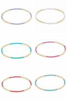 - Hand beaded on high performance elastic for a slight stretch to easily roll on and off your wrist