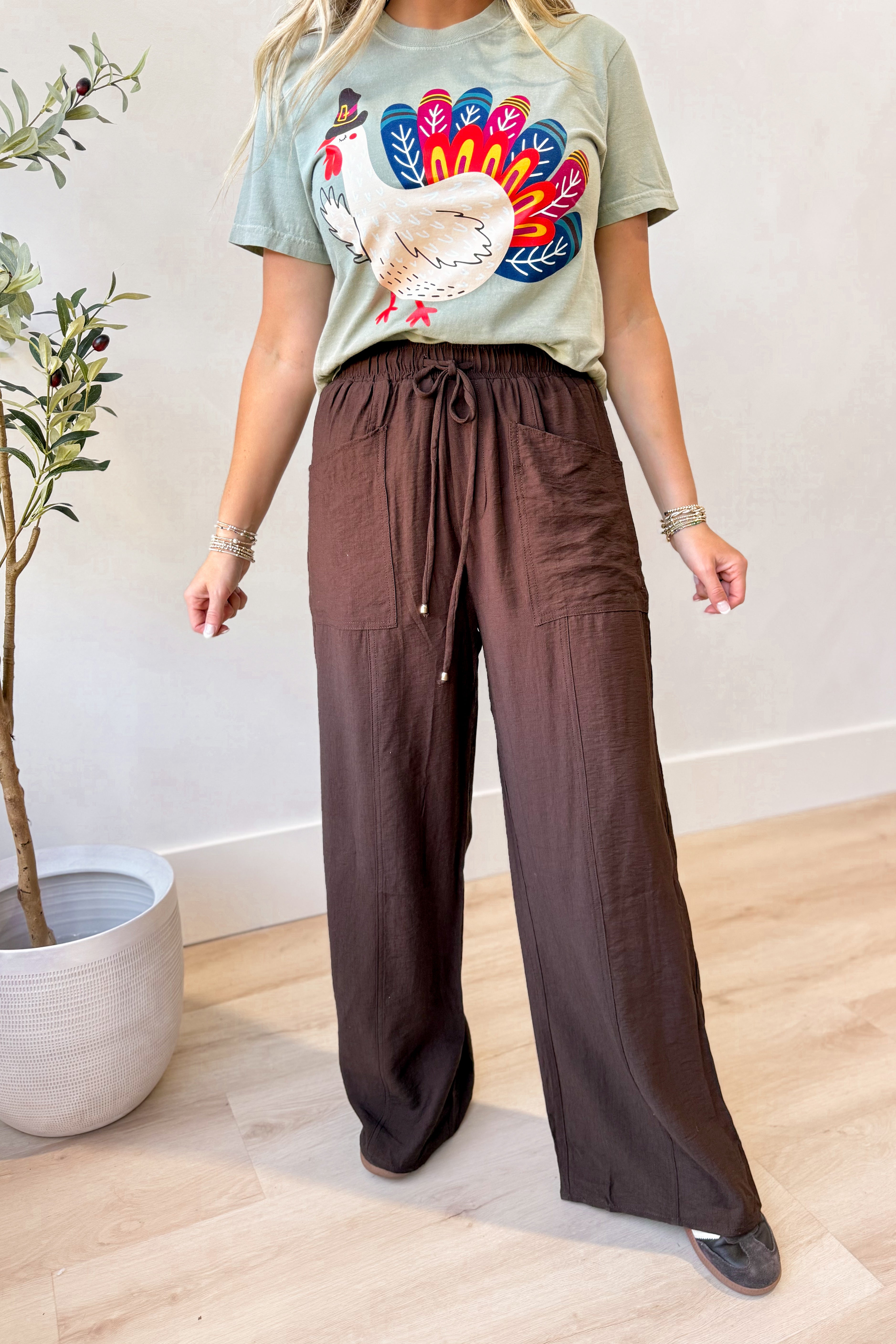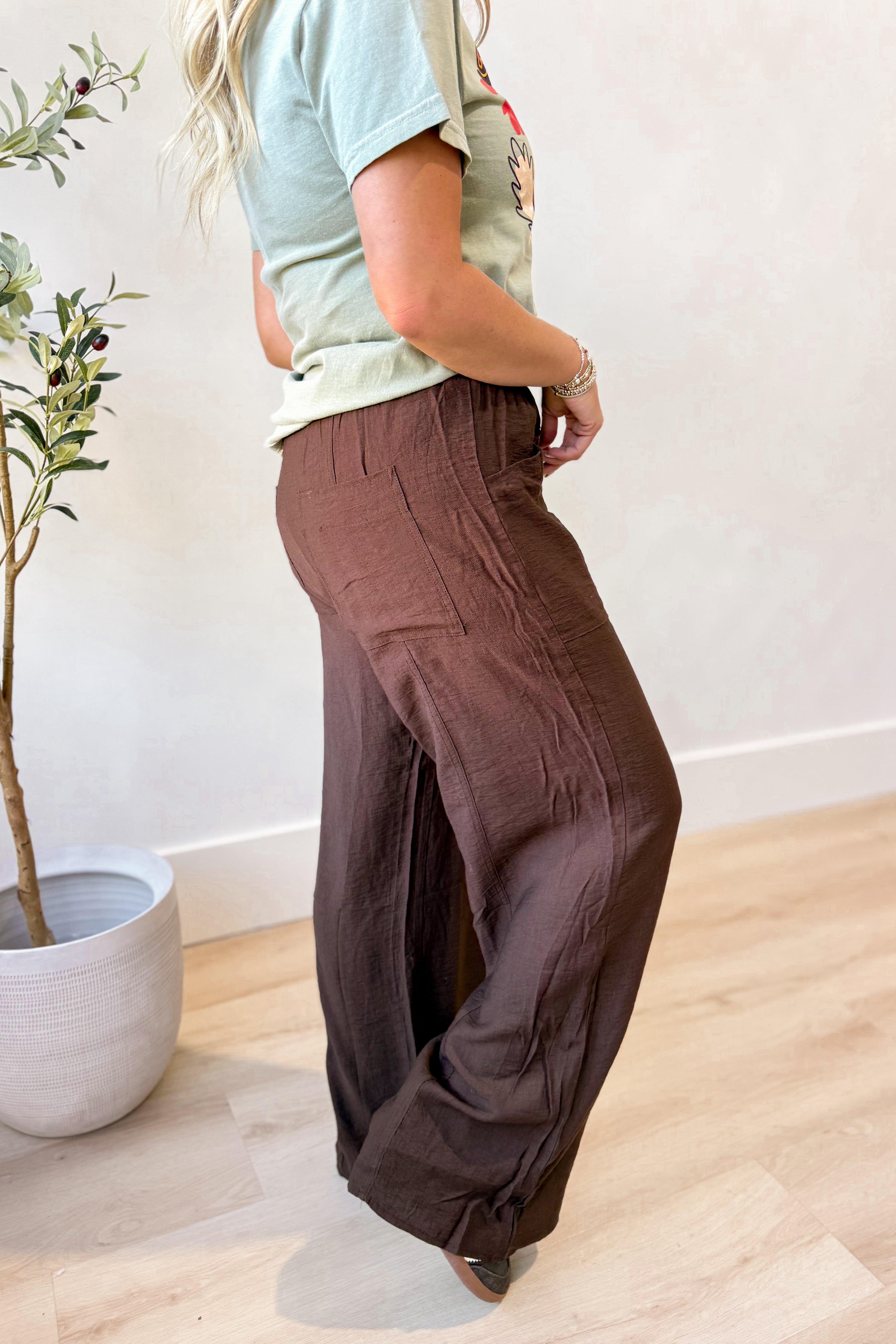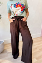 Step into effortless style with the Leroy High Waist Wide Leg Pant by Entro. These lightweight, relaxed-fit pants feature a playful wide leg silhouette and a comfy drawstring waist for an adjustable fit. Perfect for all-day wear, they come with handy pockets to keep your essentials close. Whether you're lounging or out and about, these pants bring comfort and charm to your everyday look.