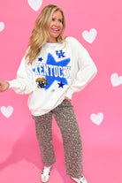 Get cozy in the Kentucky Aura Multi Printed Pullover by Gameday Social. Featuring a classic crew neck and long sleeves, this solid-color pullover is brought to life with playful, eye-catching prints. Perfect for showing off your spirited side, it’s comfy enough for game day or any casual day out. Add a splash of fun to your wardrobe with this vibrant must-have!