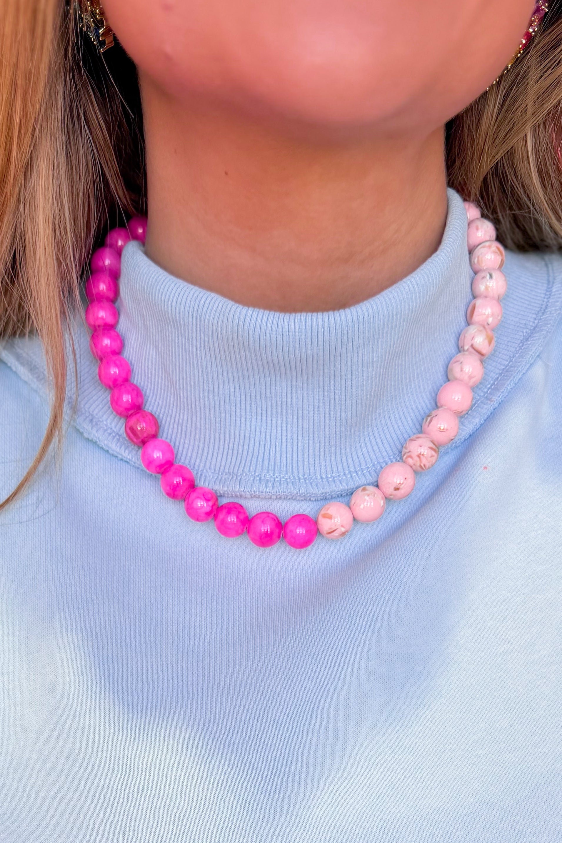 Add a pop of playful charm to your fall outfits with the Eloise Necklace. Featuring a mix of dark pink beads and light pink marbled beads, this necklace offers a fun layering piece that brightens up any look. It’s easy to wear all day with a secure magnetic clasp and a handy extender chain for the perfect fit every time. Pair one with a pair of earrings for a sweet + thoughtful gift! Perfect for brightening someone’s day or treating yourself to a cheerful accessory.