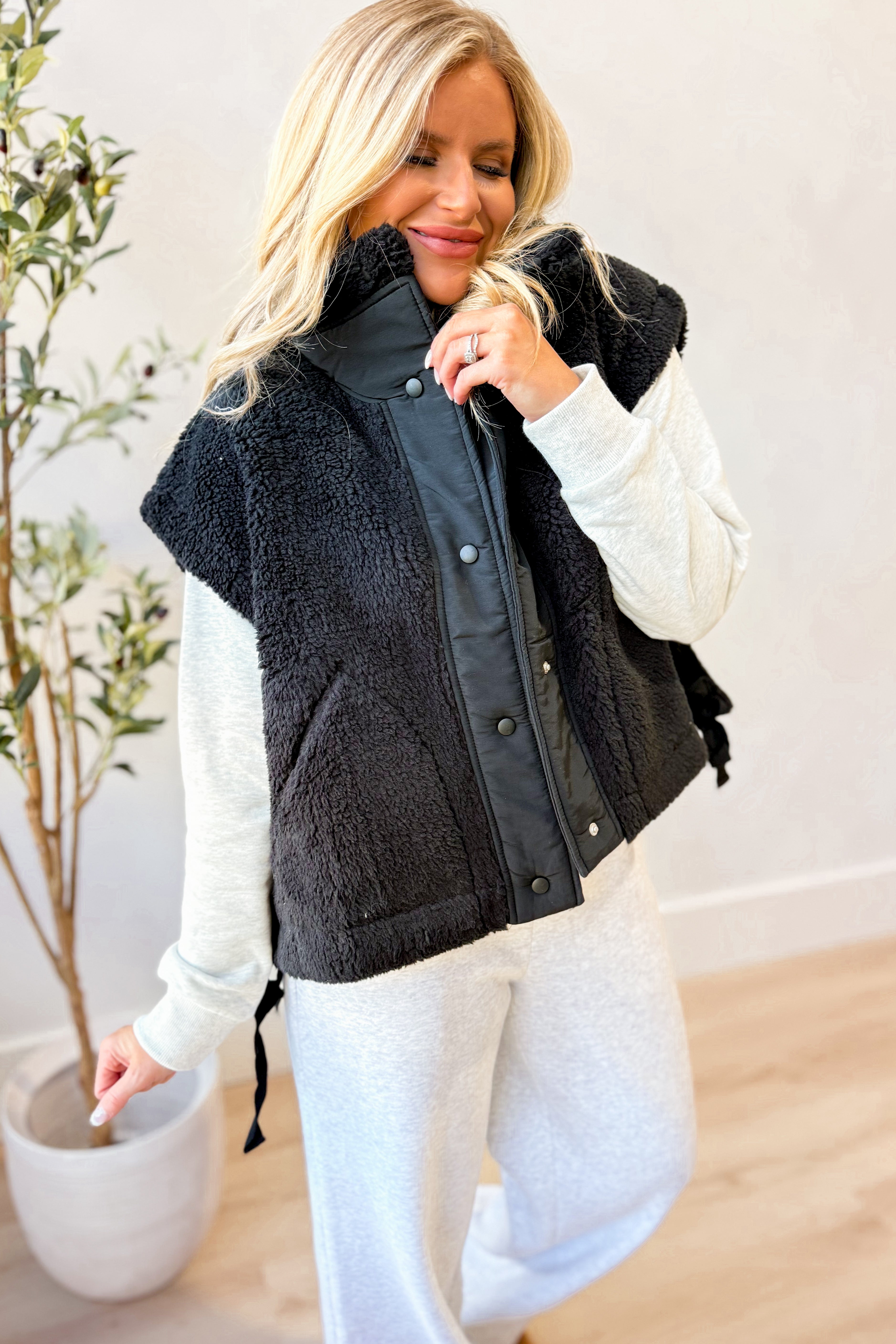 Featuring a chic extended neck and sleeveless design, it’s perfect for layering with attitude. The button-down front adds a touch of classic cool, while the handy pocket keeps your essentials close for on-the-go moments. This playful piece effortlessly blends style with a dash of practicality, making it your new go-to for any casual outing.
