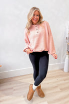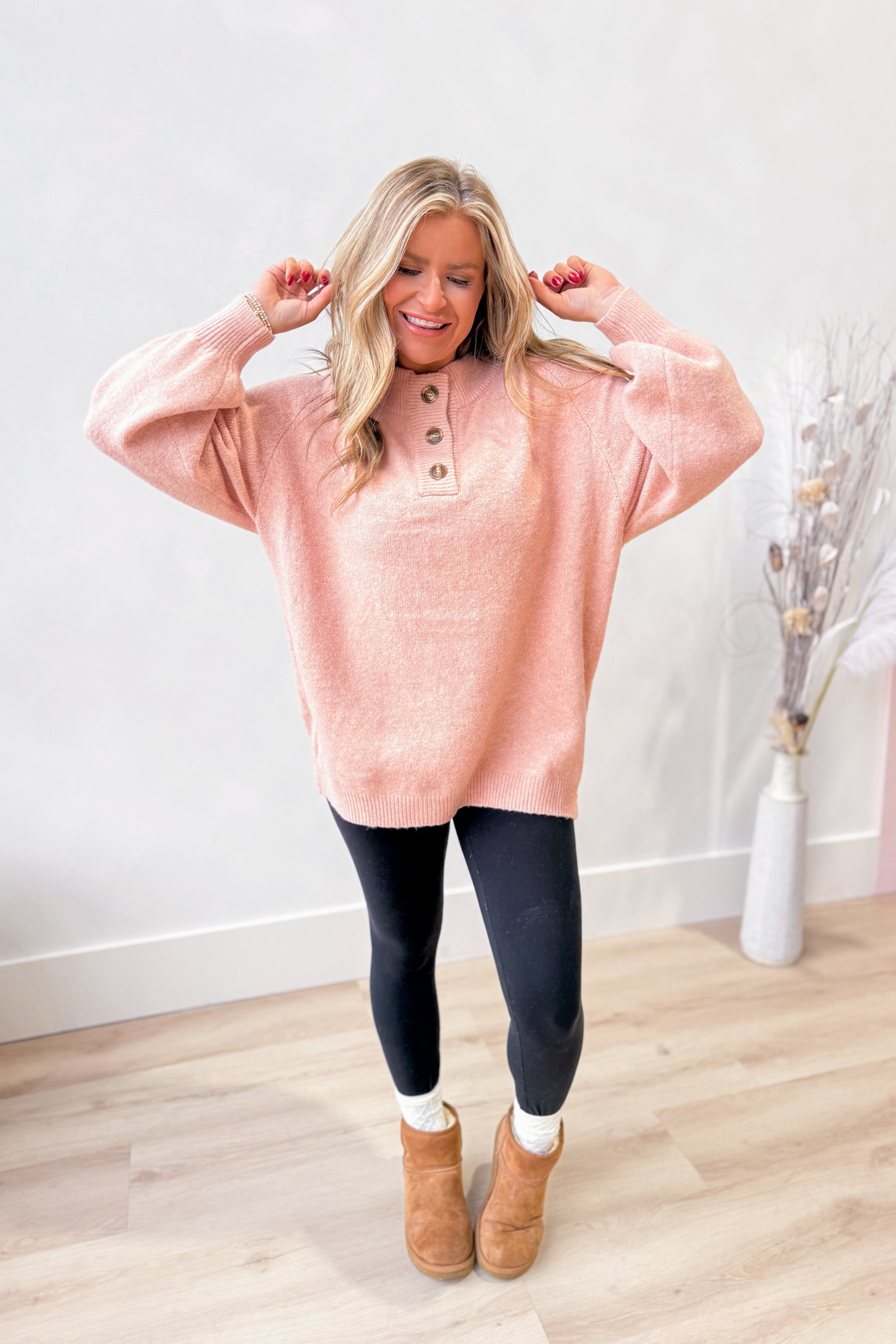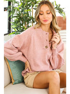 The Lola Button Front Knit Top from VINE & LOVE is your new go-to for effortless style. This cozy knit features a charming button front detail and relaxed drop shoulders that give off that perfectly laid-back vibe. Long sleeves keep you warm while the solid design pairs with literally everything in your closet. Layer it, tuck it, or wear it solo—this versatile piece does it all!