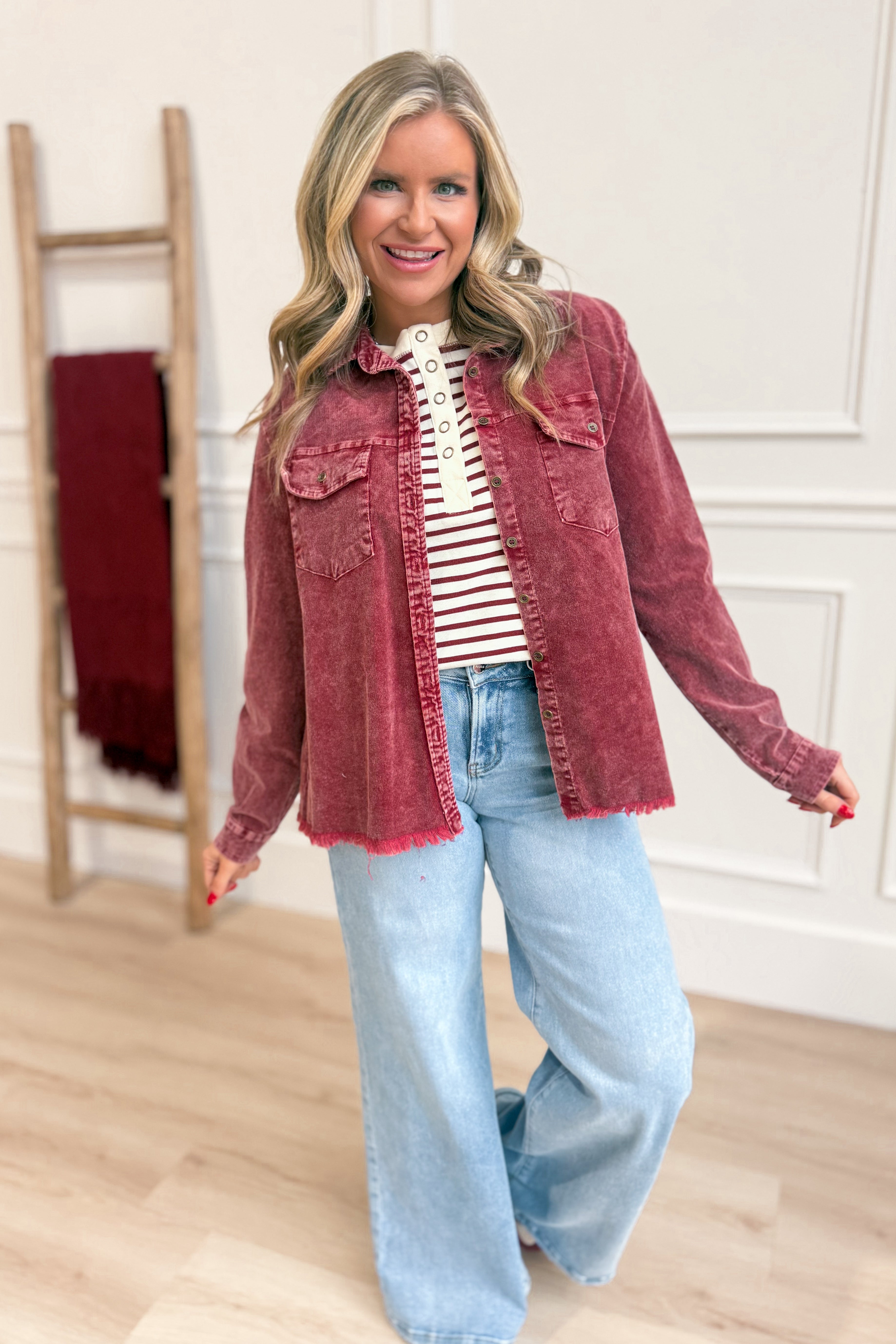 Add a splash of effortless cool to your wardrobe with the Linda Stone Wash Collared Button Down by Umgee. This solid, long-sleeve shirt features a classic collar and button-down front, all softened by a stylish stone wash finish. Perfect for layering or wearing solo, it brings a laid-back vibe with a touch of charm to any outfit.