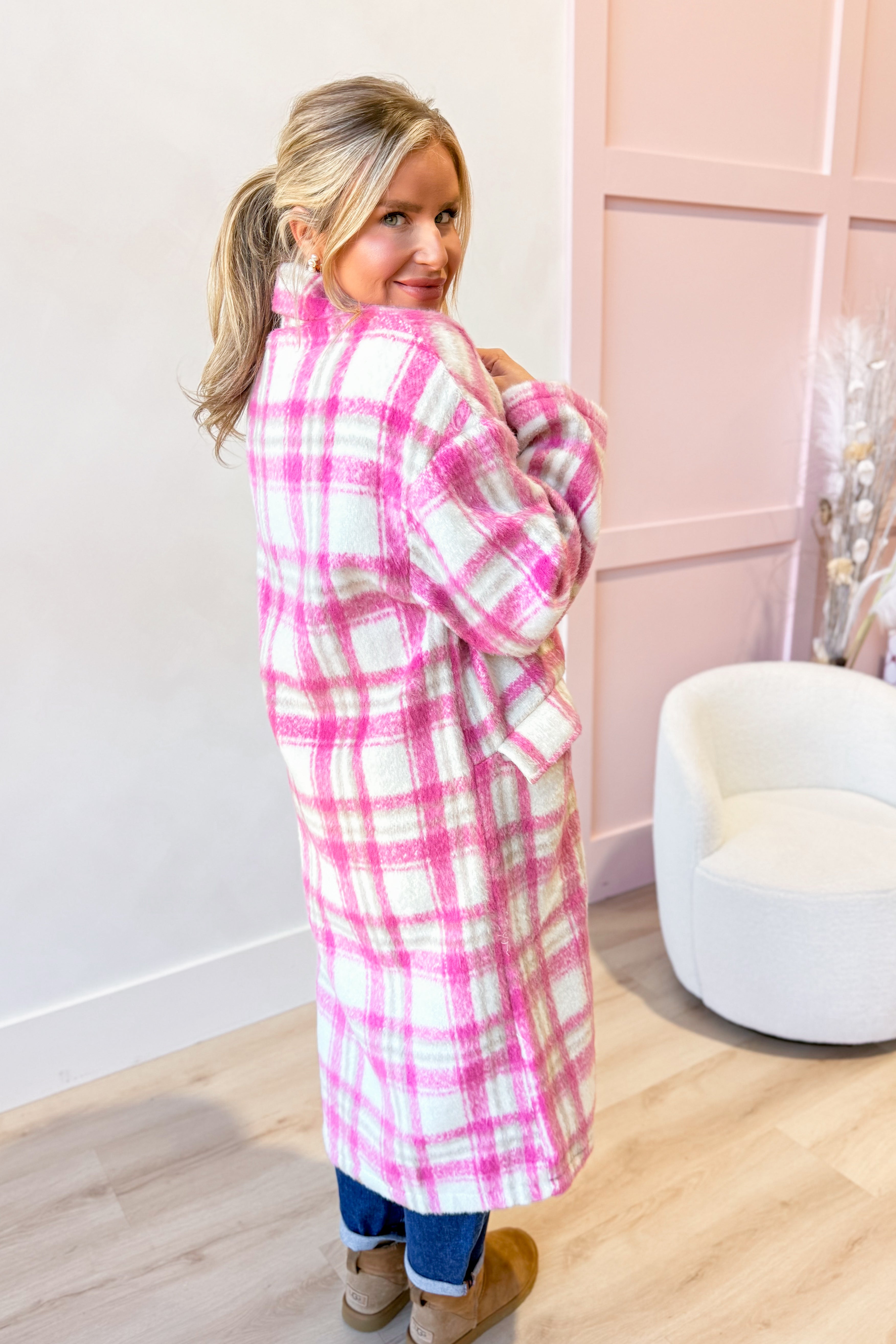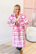 Embrace cozy vibes with the Jessi Plaid Button Down Jacket by She + Sky. This relaxed, long-style jacket features a classic plaid pattern and handy front pockets, perfect for stashing your essentials. Button it up for a laid-back look that’s as comfortable as it is stylish—your new go-to for effortless cool!