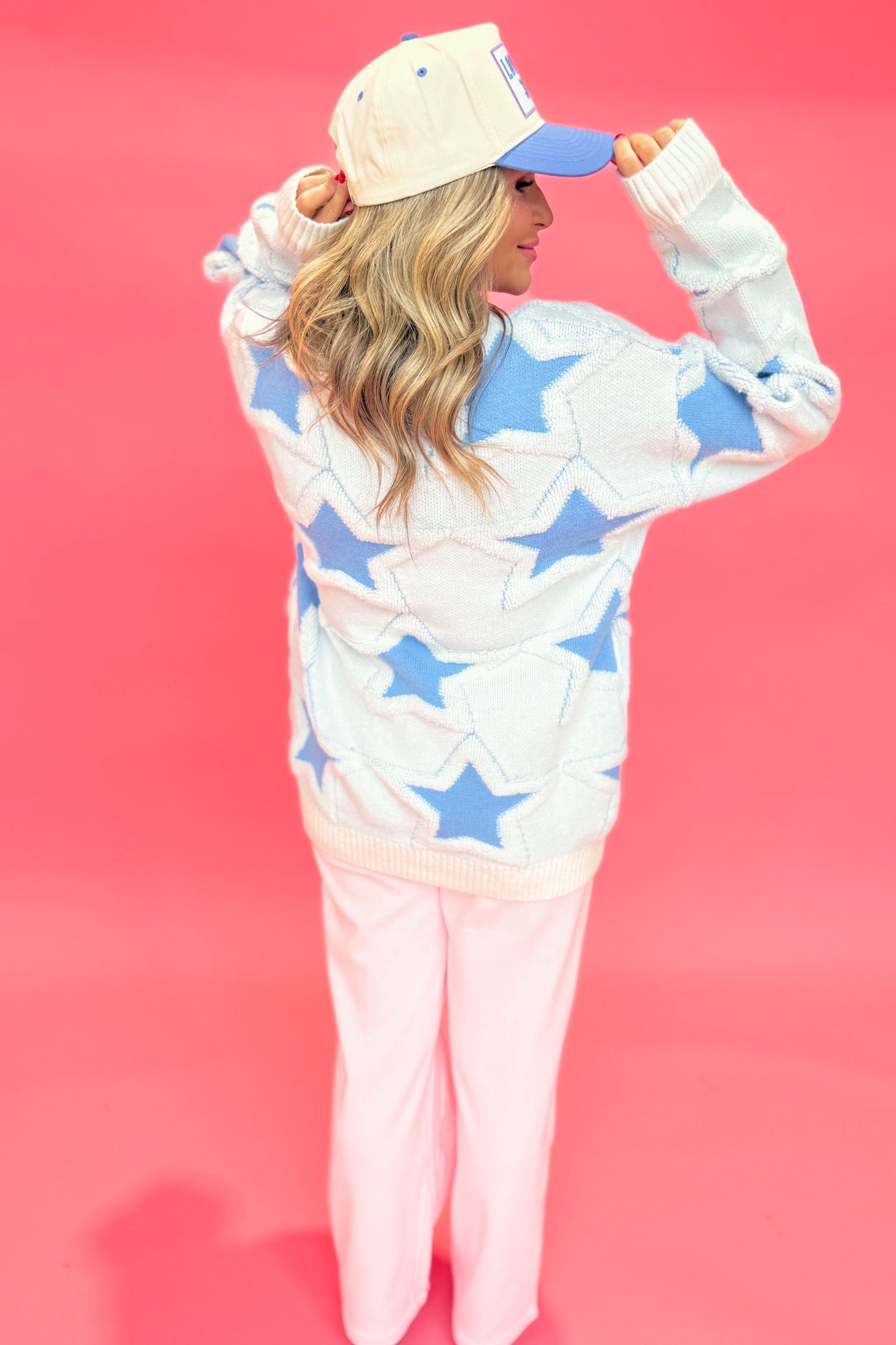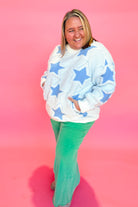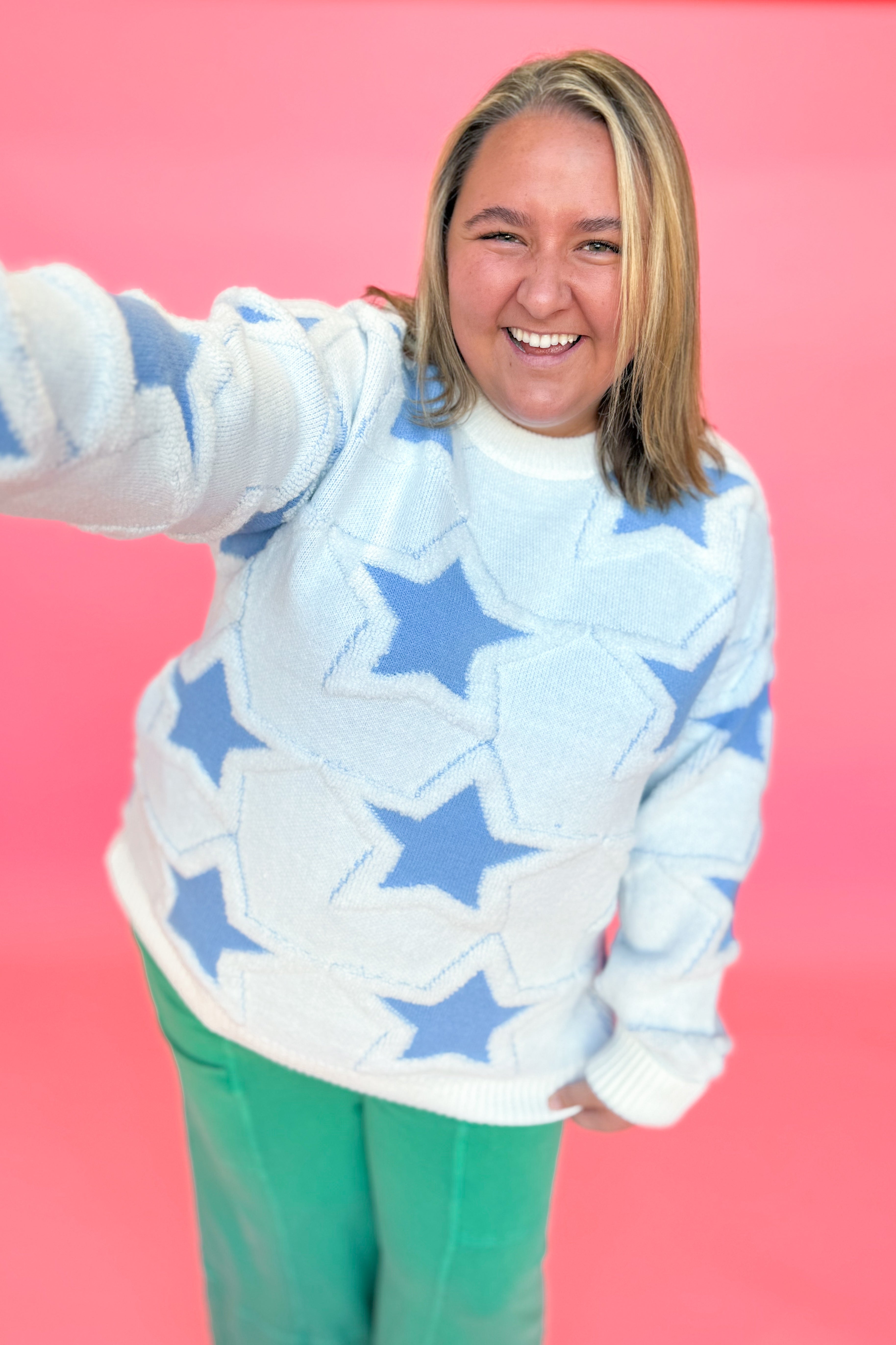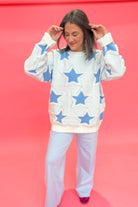 Add a star-studded touch to your wardrobe with the Bobbi Chunky Knit Star Sweater from BlueVelvet. In a vibrant blue hue, this relaxed fit sweater features a playful star print, cozy knit texture, and stretch for all-day comfort. Perfect for adding a fun pop to any outfit!