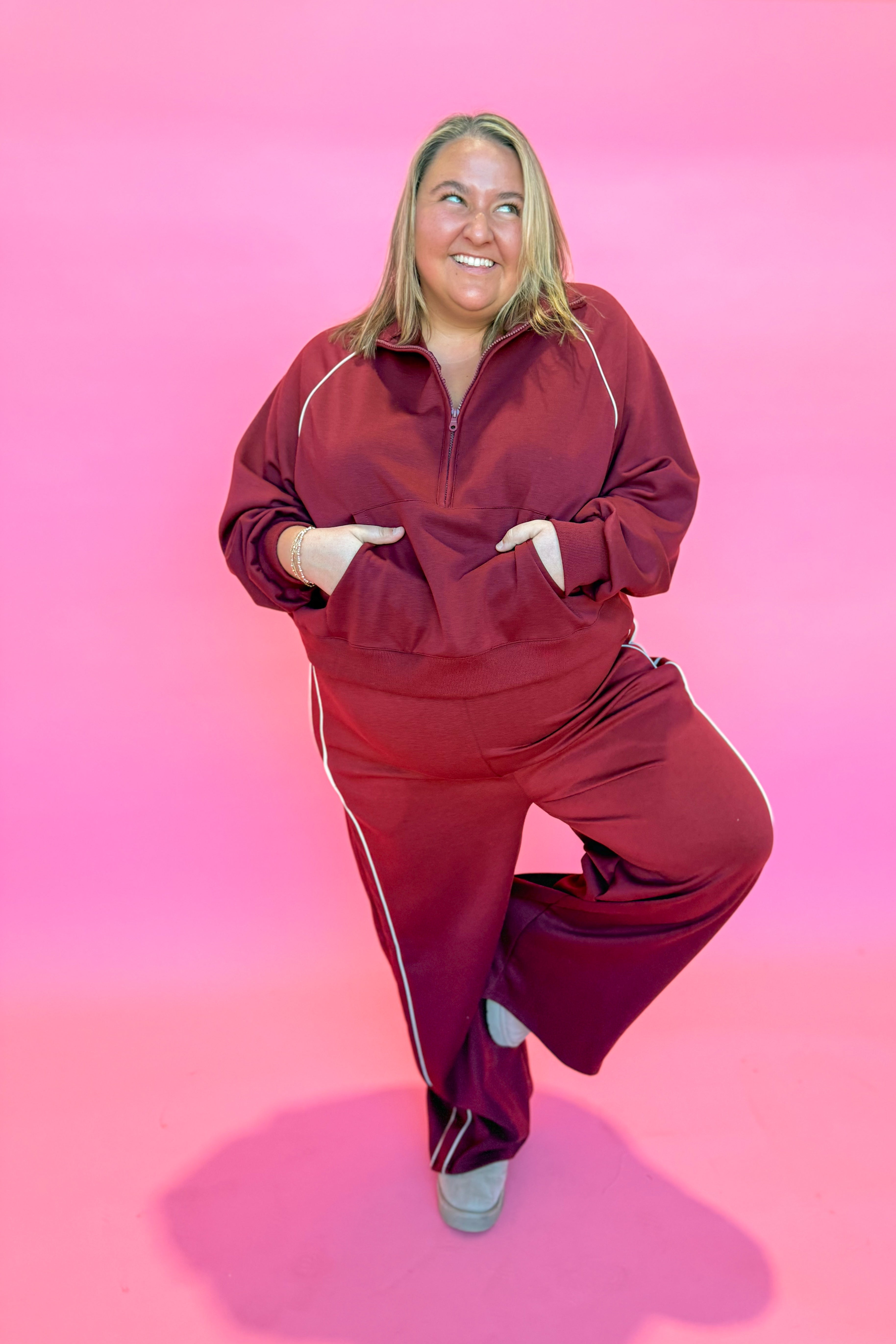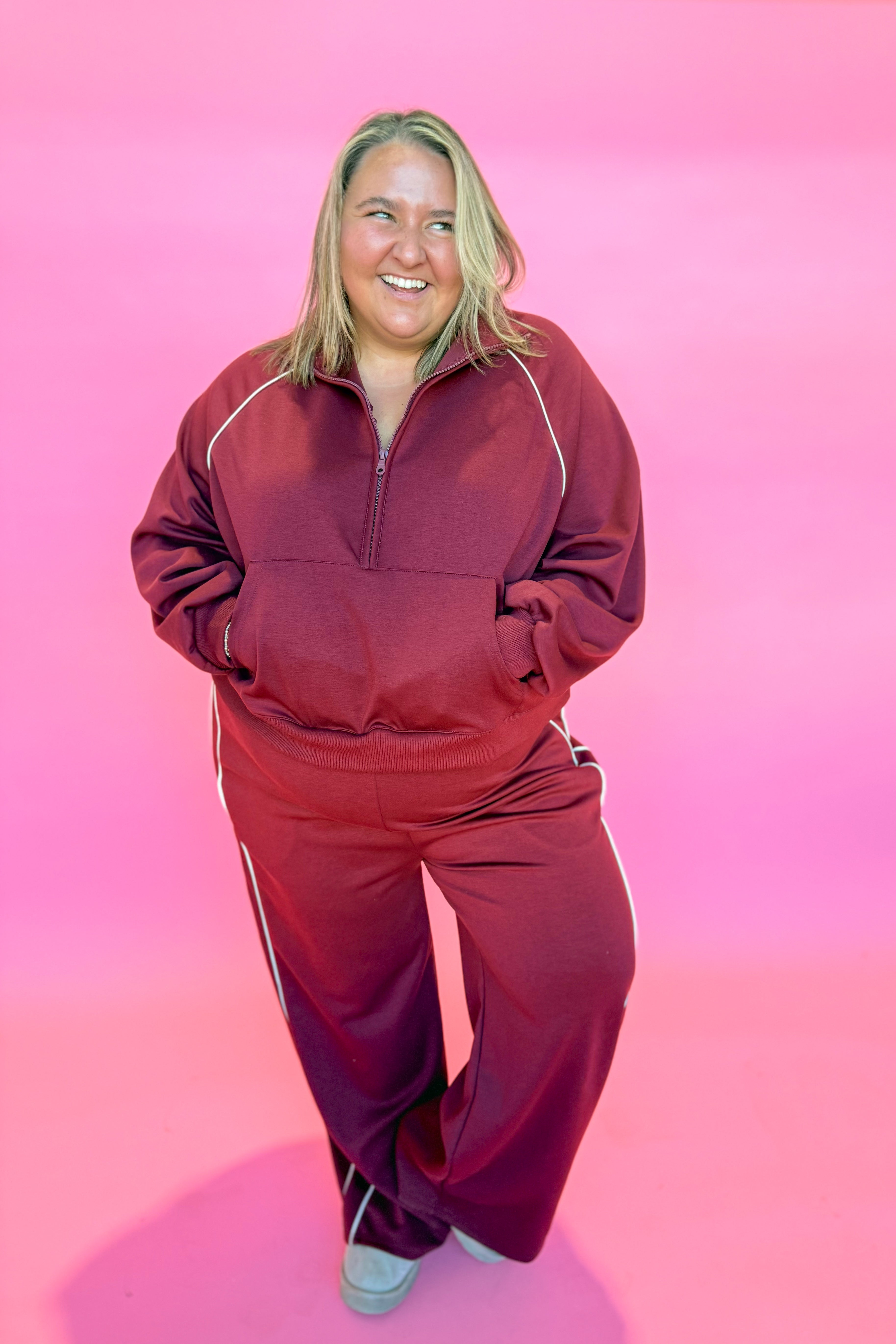 Step into comfort with the Livvy Half Zip Piping Detail Pant Set! This playful set features a solid-colored quarter zip top with crisp white trim and long sleeves for cozy style. The straight-leg pants offer a relaxed fit and handy pockets to keep your essentials close. Perfect for lounging or casual outings, this set blends ease and flair effortlessly.