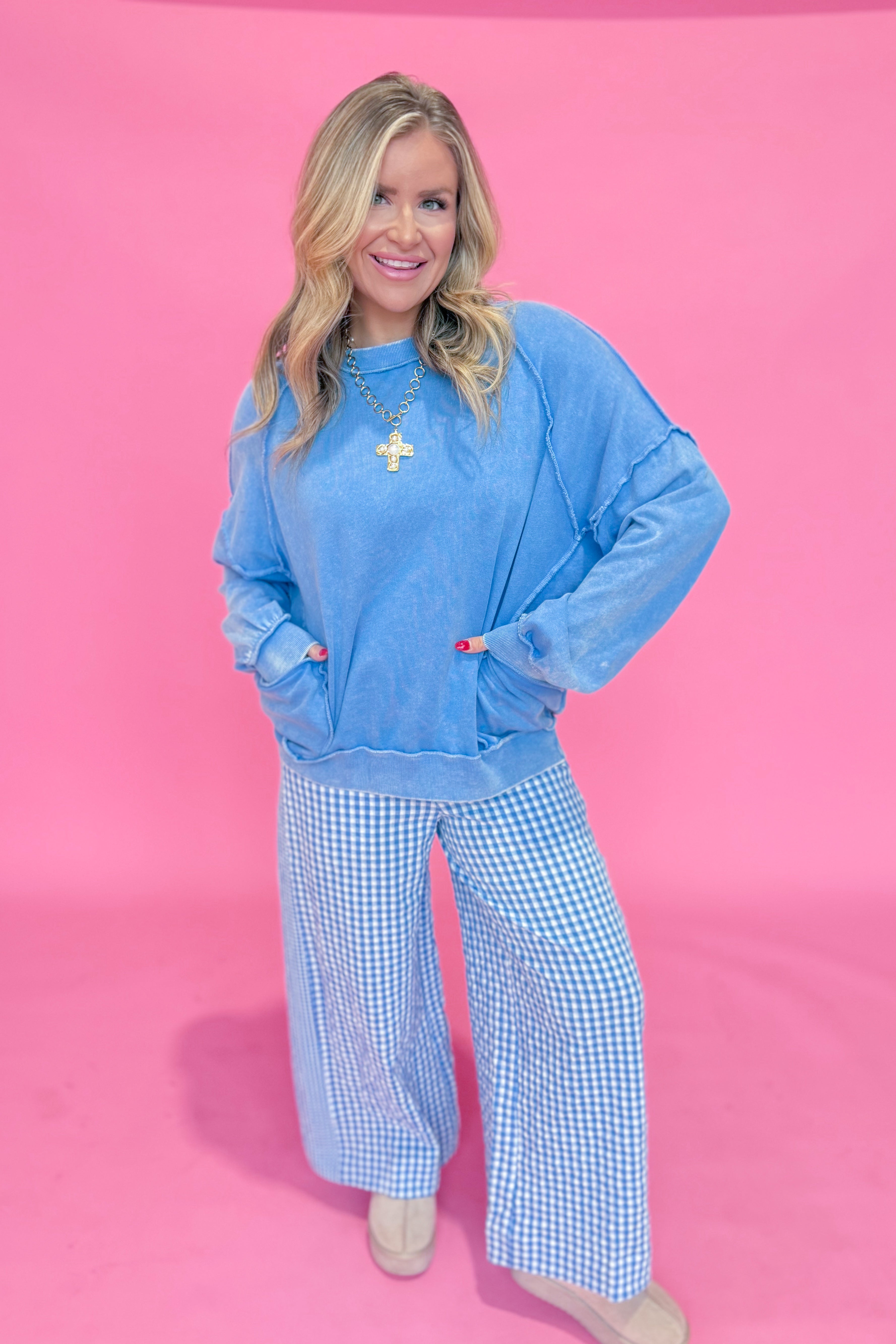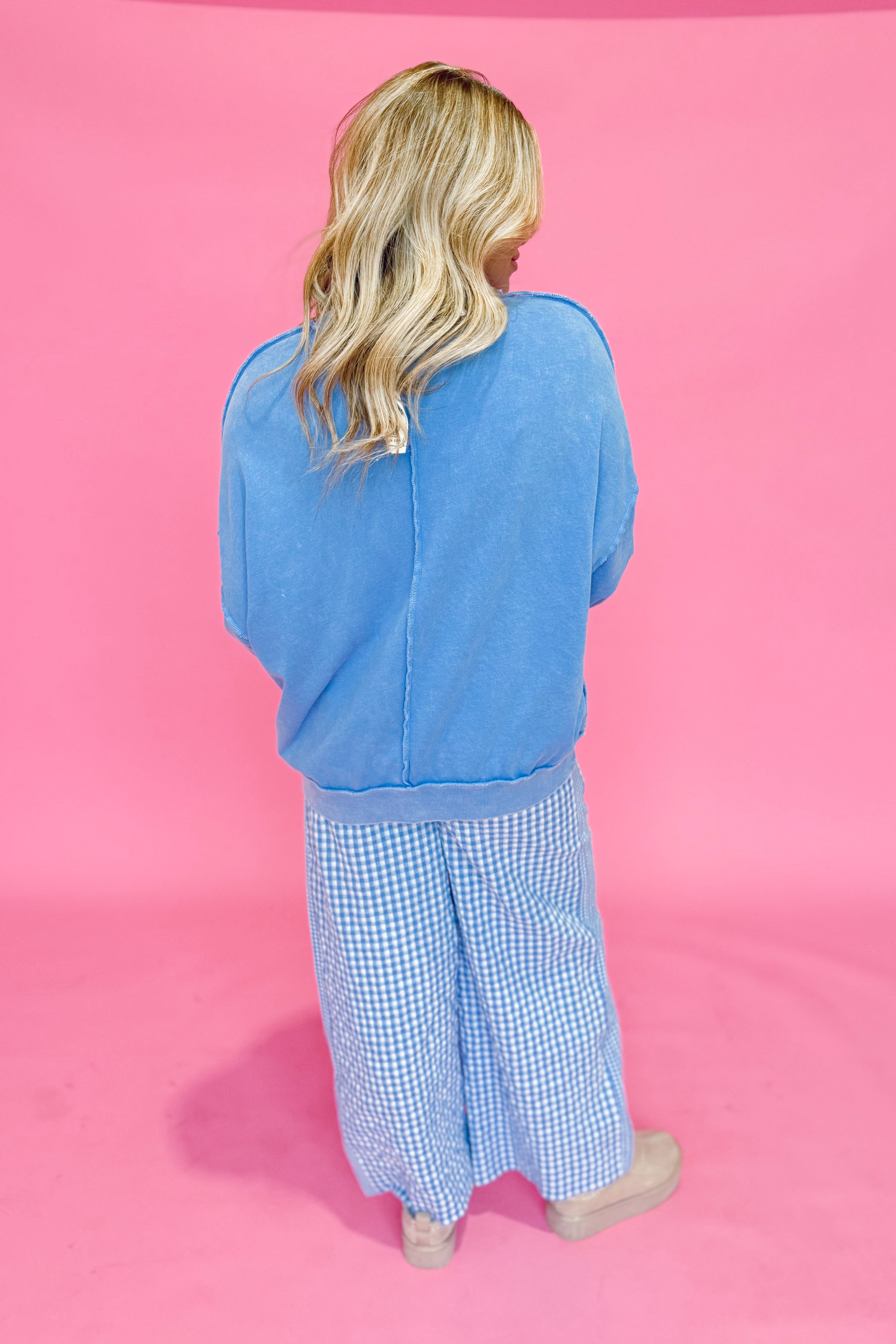Embrace cozy vibes with the Valorie Cut Out Mineral Washed Pullover. This playful long-sleeve features a classic crew neck and raglan sleeves for easy movement. Its solid color and exposed seam details add a touch of laid-back charm, while the mineral wash gives it a soft, lived-in feel. Perfect for relaxed days when comfort meets style effortlessly.