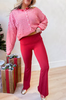 Elevate your everyday style with the Emily High Waisted Flare Pant by KIMBERLY C. This solid beauty features a flattering high waist and supportive wide band that keeps you comfortable all day long. The lightweight fabric moves with you, making it perfect for everything from brunch dates to casual outings. Flare it out and feel fabulous!