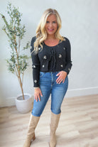 This Blu Pepper cardigan is blooming with charm! Its ribbed knit and long sleeves provide cozy comfort, while the floral embroidered design adds a playful touch. The tie front adds a trendy twist to this must-have paisley piece.