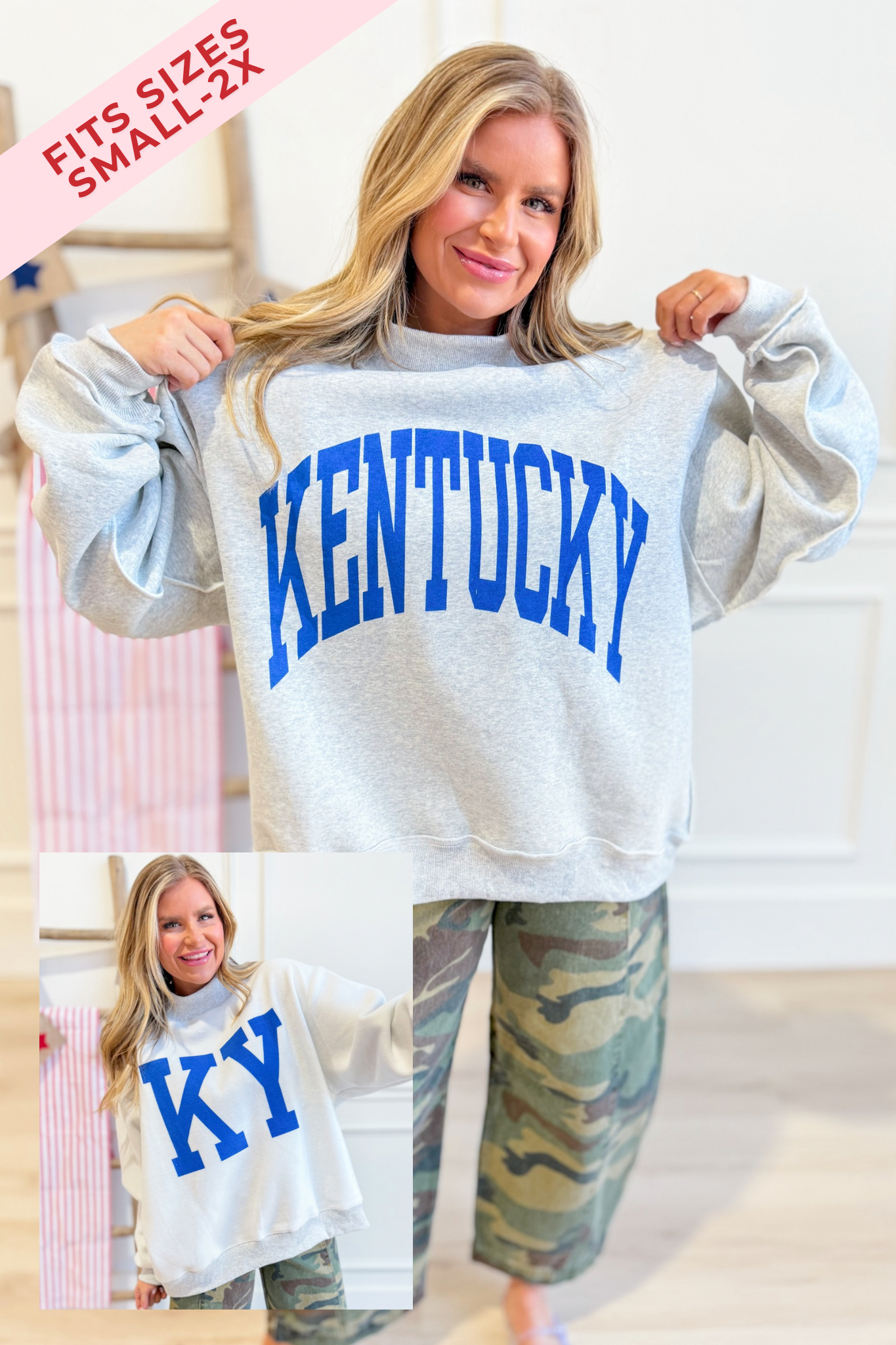 Experience versatility with our Kentucky Reversible Mock Neck Sweatshirt from Bucketlist. This playfully oversized sweatshirt gives you two looks in one! Flip it inside out whenever your mood changes. The trendy mock neck adds a stylish touch that keeps you cozy while looking fashion-forward. Perfect for mixing up your wardrobe without taking up extra closet space!