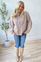 Add a chic twist to your cozy wardrobe with this solid long sleeve knit cardigan by Entro. Featuring a playful mock neck and eye-catching hammered gold-tone buttons, it brings charm to any outfit. Practical front pockets keep essentials close, while the soft knit ensures all-day comfort. Perfect for layering during fall’s crisp days, this cardigan blends style and warmth effortlessly.