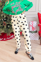 These Penny Polka Dot Jogger Sweatpants bring comfort and charm to your casual days. Featuring a soft plush fabric and an elastic drawstring waist, they offer a cozy fit that moves with you. With handy pockets for your essentials and a playful polka dot pattern, these joggers turn lounging into a stylish adventure. Perfect for relaxing or adding a fun twist to your everyday look!