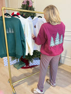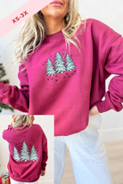 Celebrate the season in cozy style with this plush crewneck sweatshirt featuring charming embroidered Christmas trees. Its solid color and long sleeves make it perfect for chilly days, while the soft fabric keeps you comfy all day long. Get ready to spread holiday cheer with a playful touch!