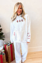 Get cozy in this playful hooded sweatshirt featuring a charming gingerbread cookie embroidery. With its solid color and long sleeves, it’s perfect for chilly days when you want to feel warm and festive. Whether you’re baking or just dreaming of sweet treats, this sweatshirt brings a sprinkle of holiday cheer to your everyday style.