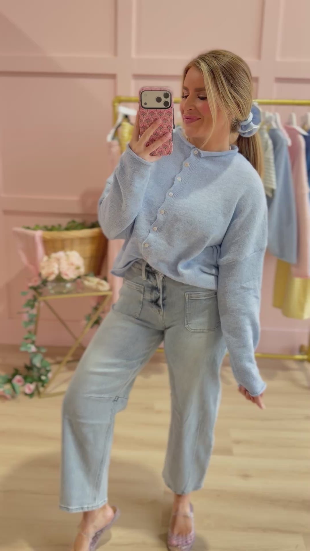 Luna Sky Blue Button Down Cardigan Top