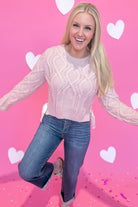 Cozy meets charming in the Catherine Satin Bow Detailed Sweater by Peach Love. This cable knit, long-sleeve sweater features a playful satin bow at the round neck, adding a flirty touch to your everyday look. Perfect for layering or wearing on its own, it’s both comfy and cute for every casual occasion.