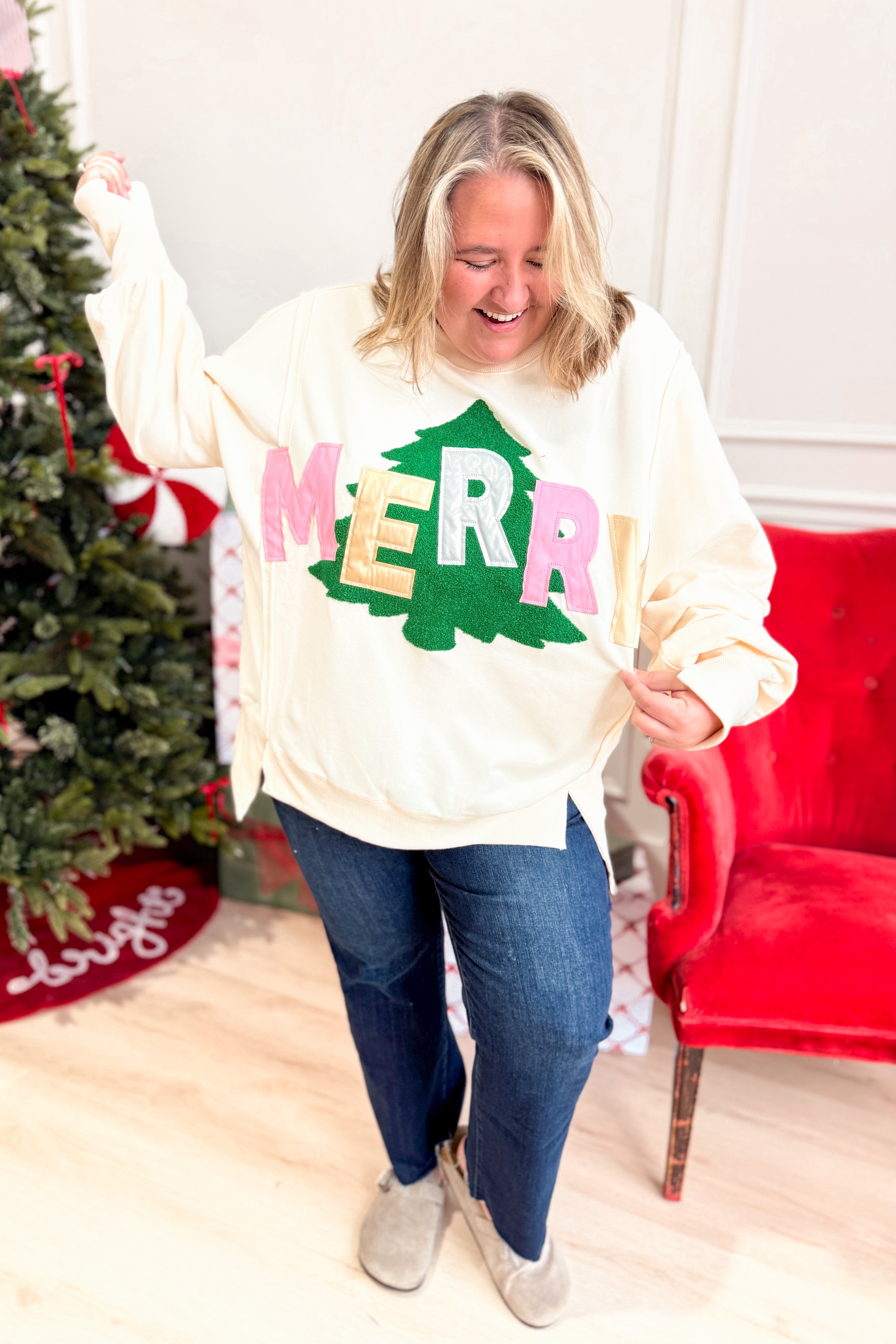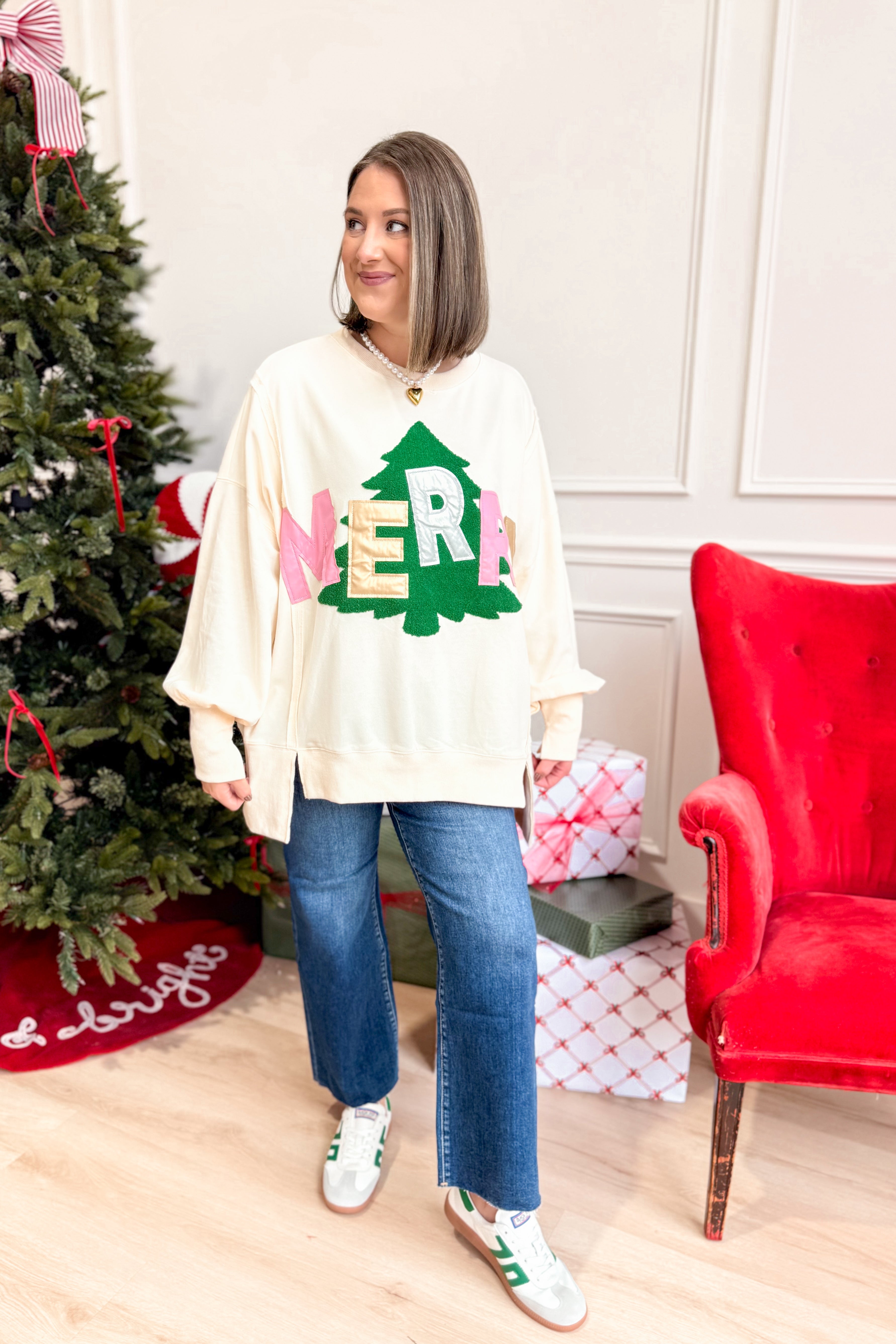 Stay cozy and cheerful with the Comet Merry Patchwork Pullover! This oversized long sleeve crewneck blends playful patchwork patterns with a comfy solid base, perfect for brightening up chilly days. Its relaxed fit makes it ideal for lounging or layering, letting you express your fun-loving style effortlessly.