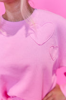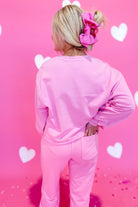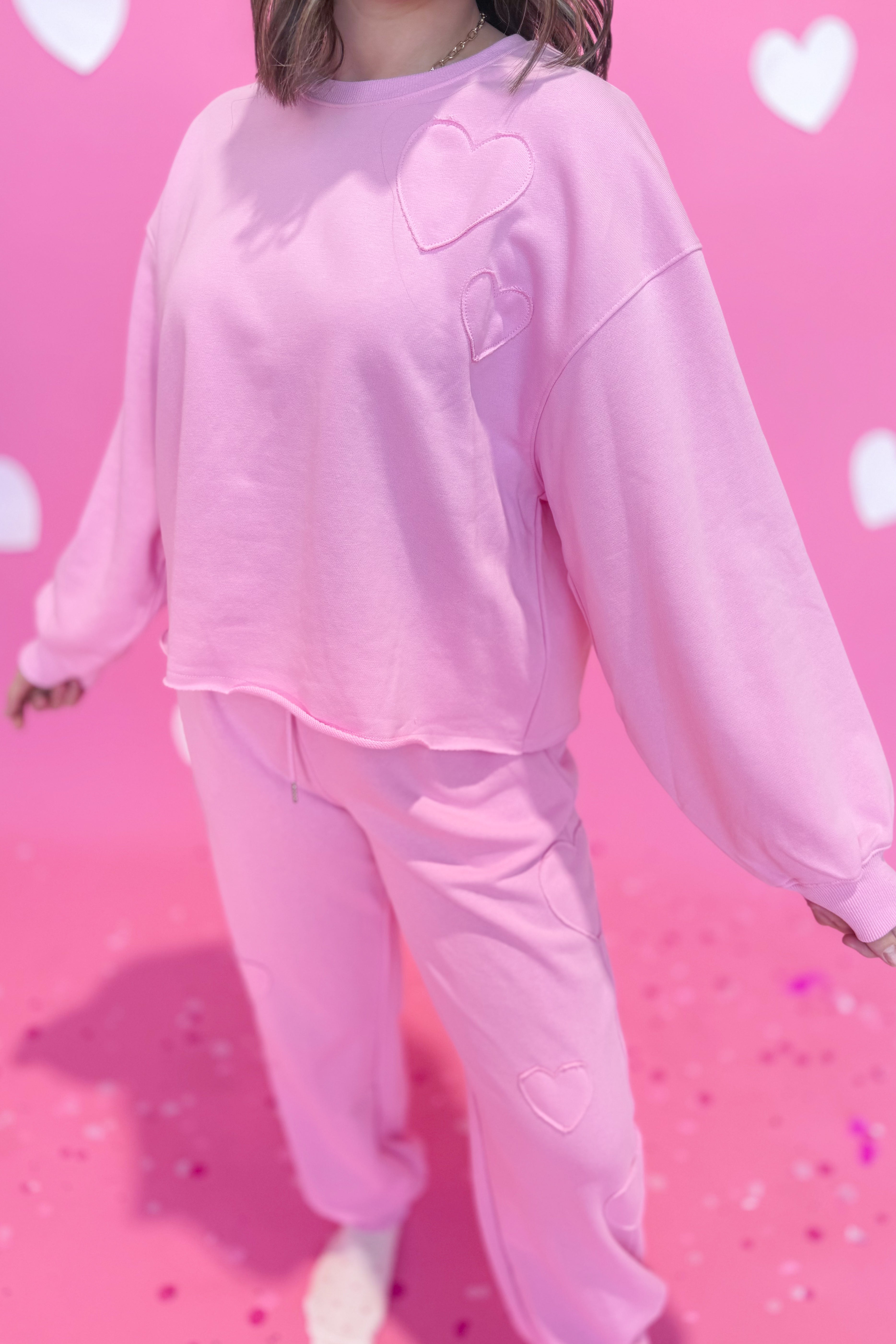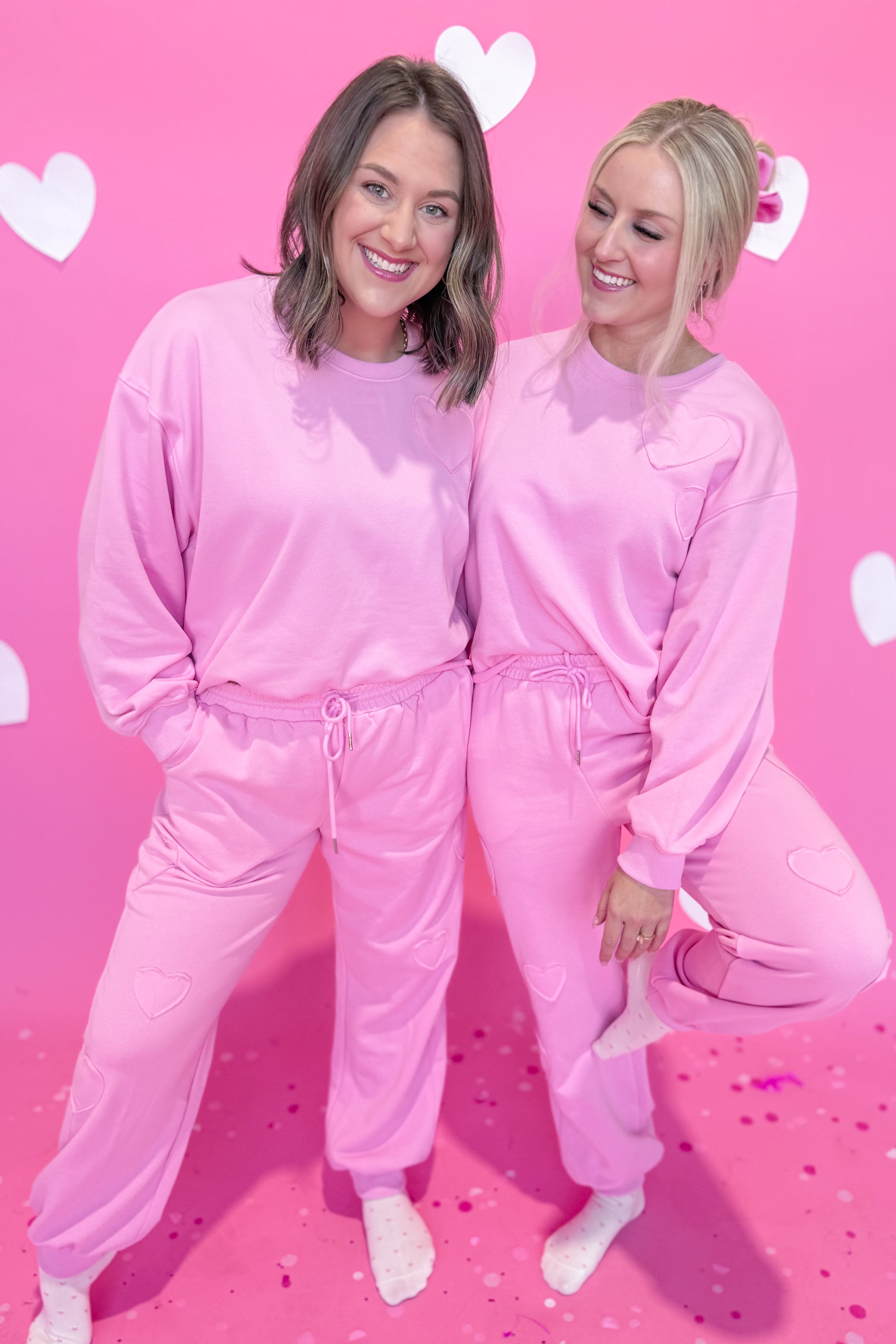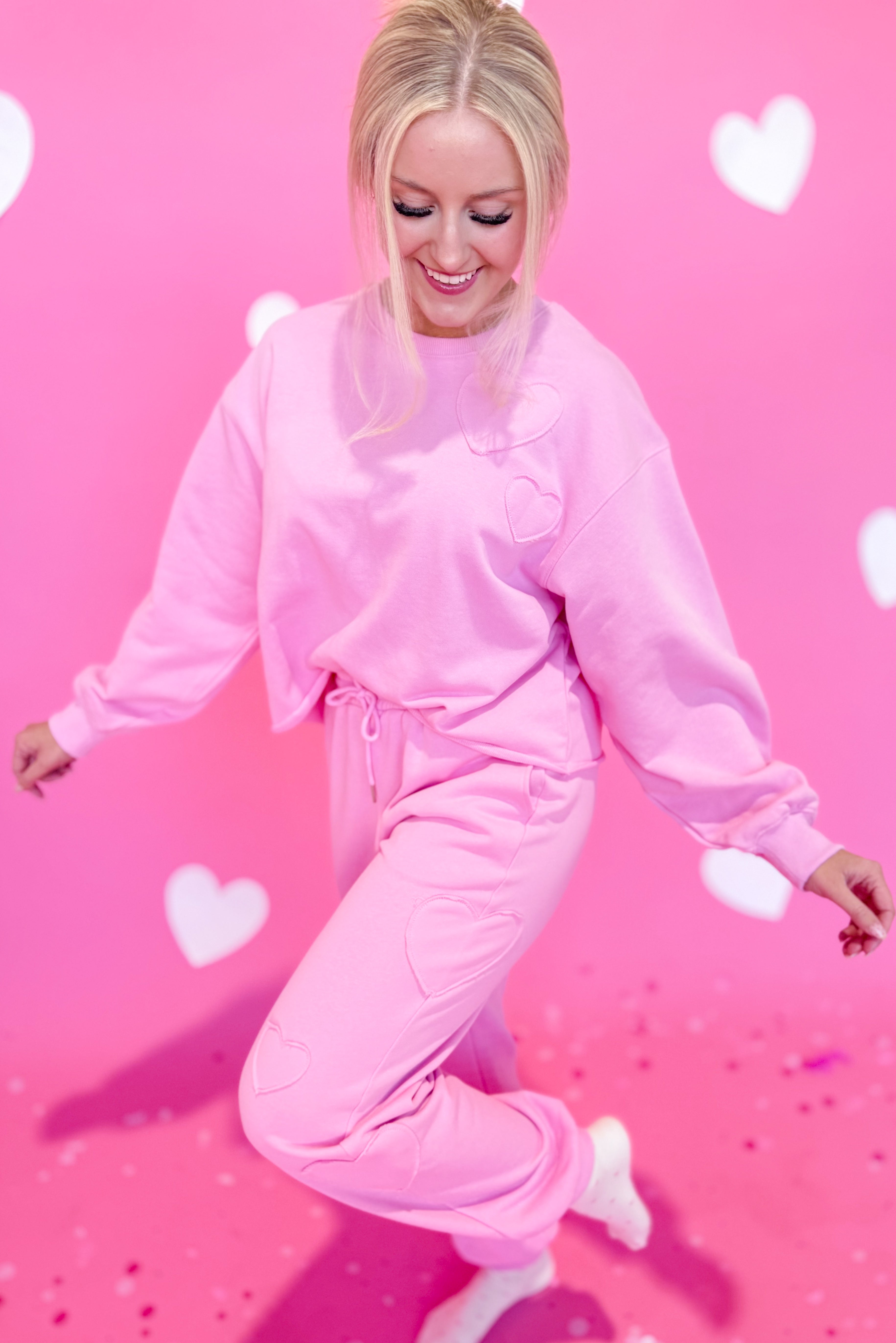 Cozy up in these adorable jogger pants that blend comfort with personality! Featuring a charming heart outline design on a solid color base, these pants rock a trendy raw edge finish for that effortlessly cool vibe. The relaxed round neckline and soft jogger silhouette make them perfect for lounging, running errands, or casual hangouts. Whether you're keeping it low-key or making a sweet statement, the Frannie joggers are your new go-to for laid-back style that feels as good as it looks.