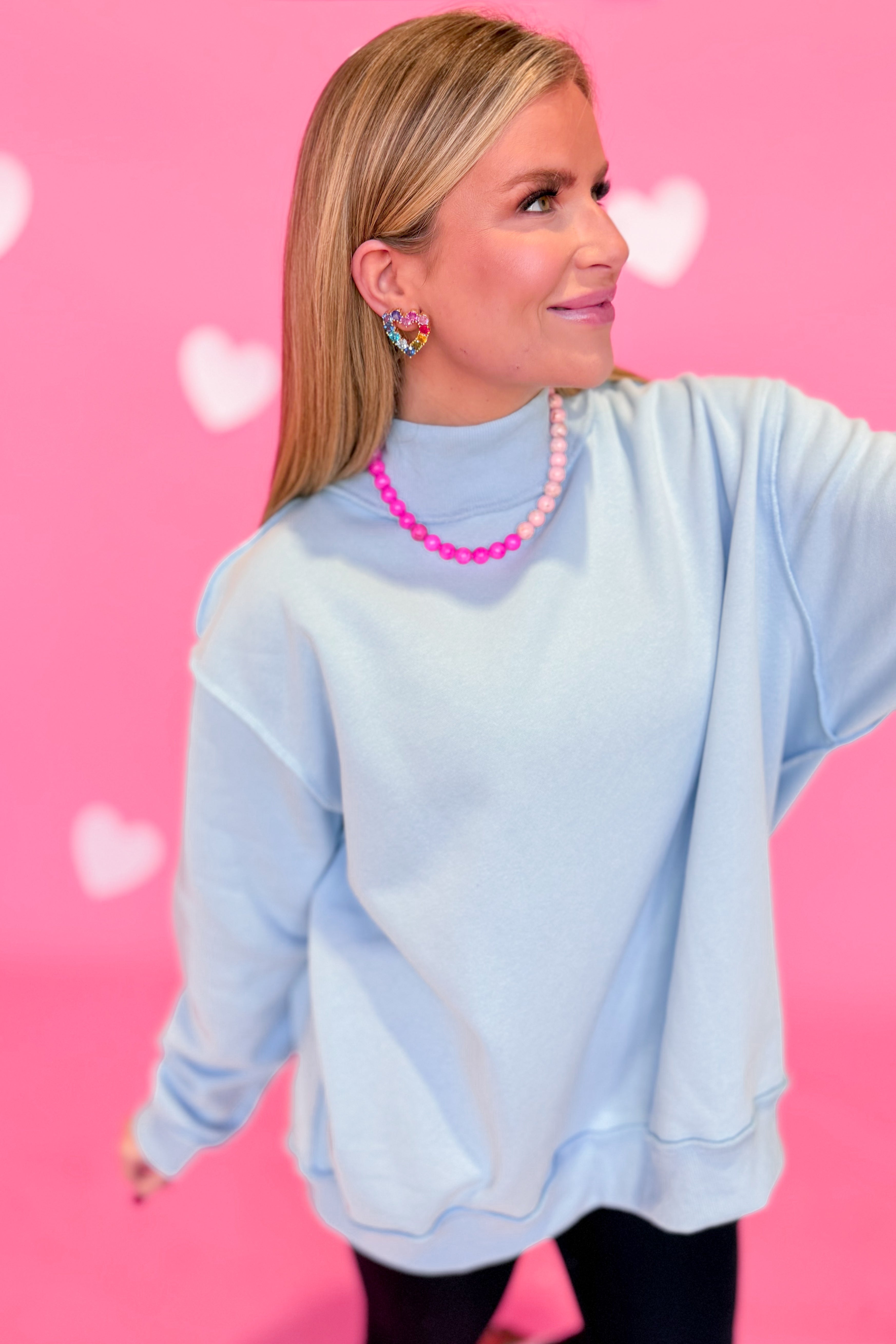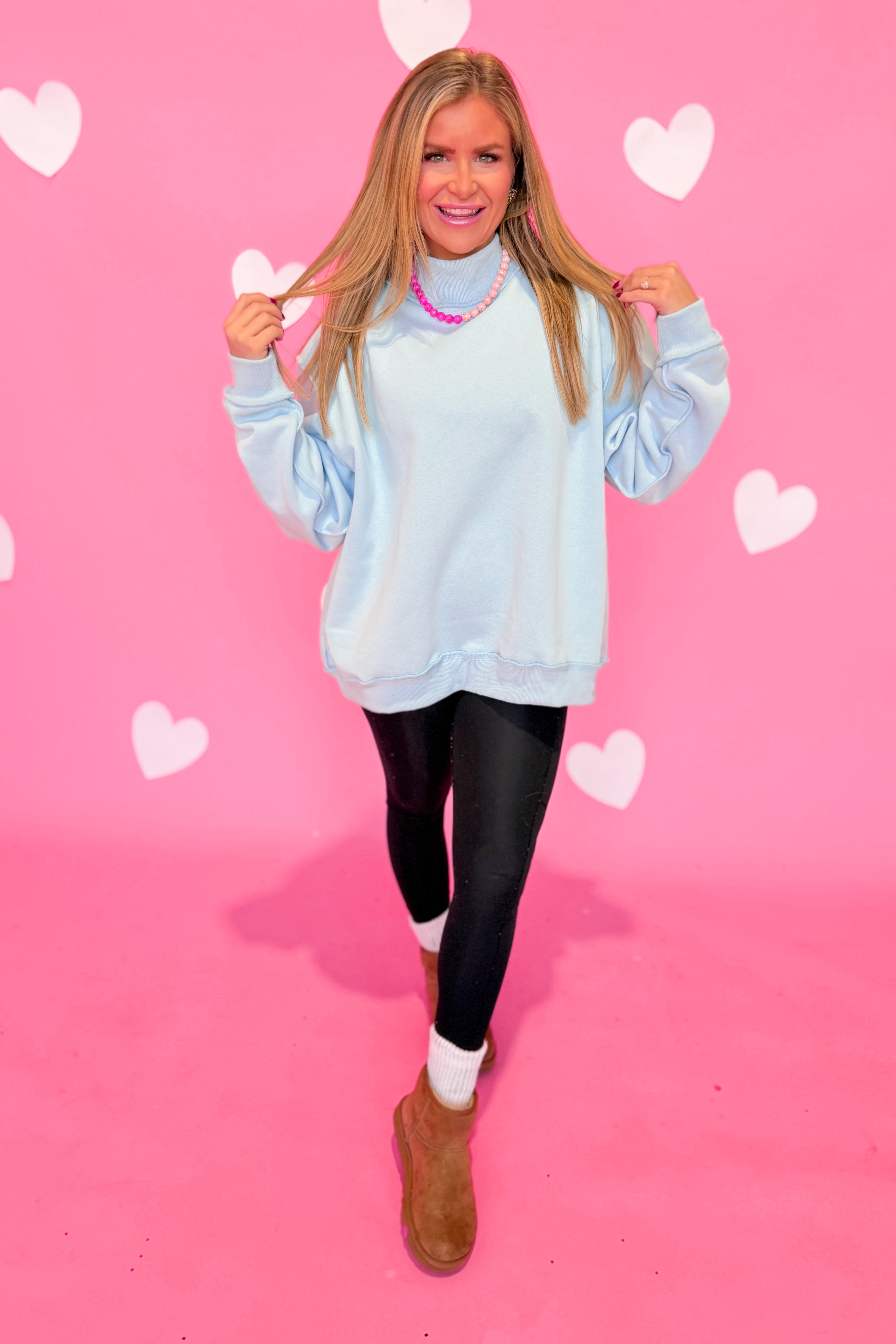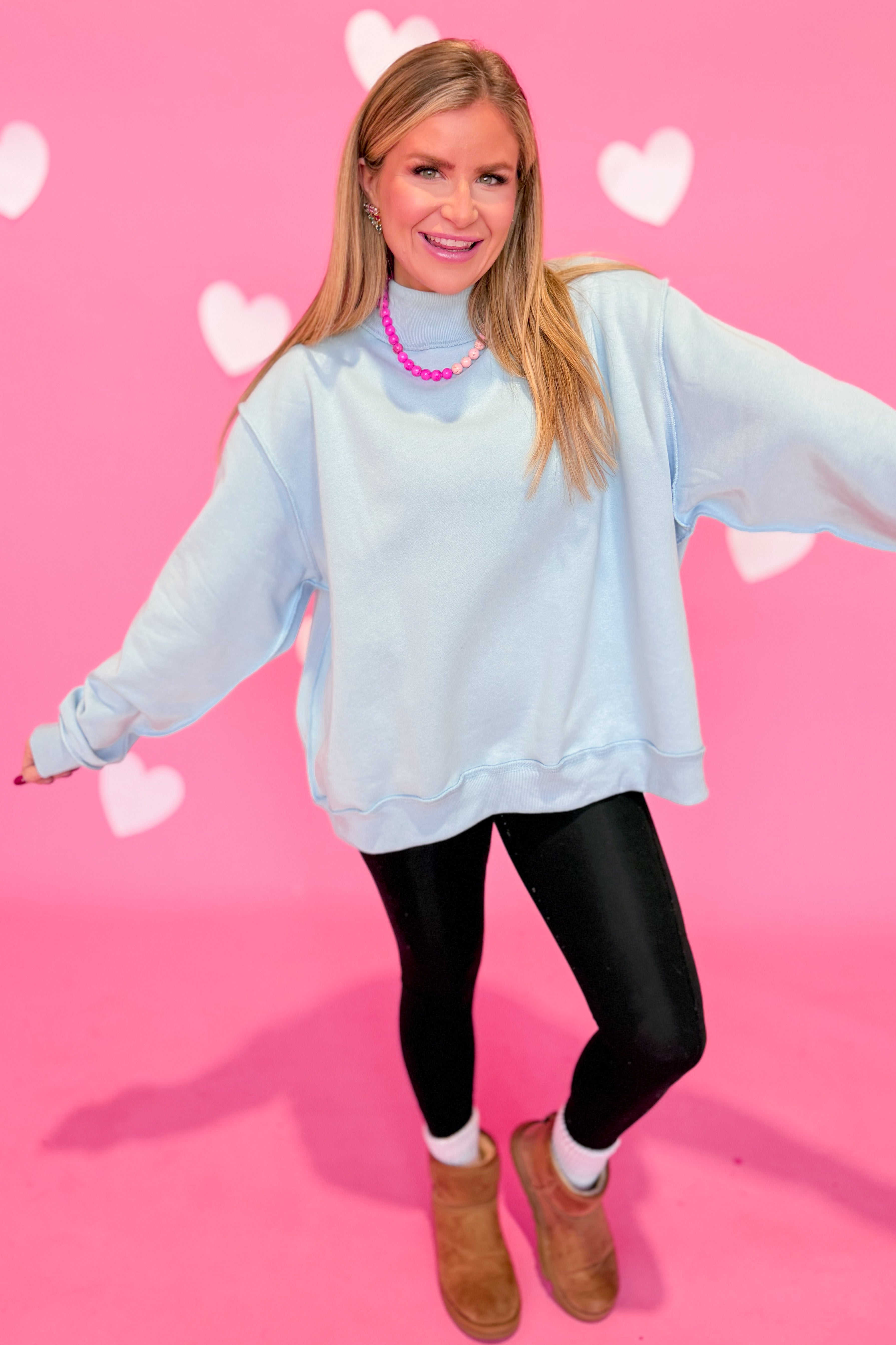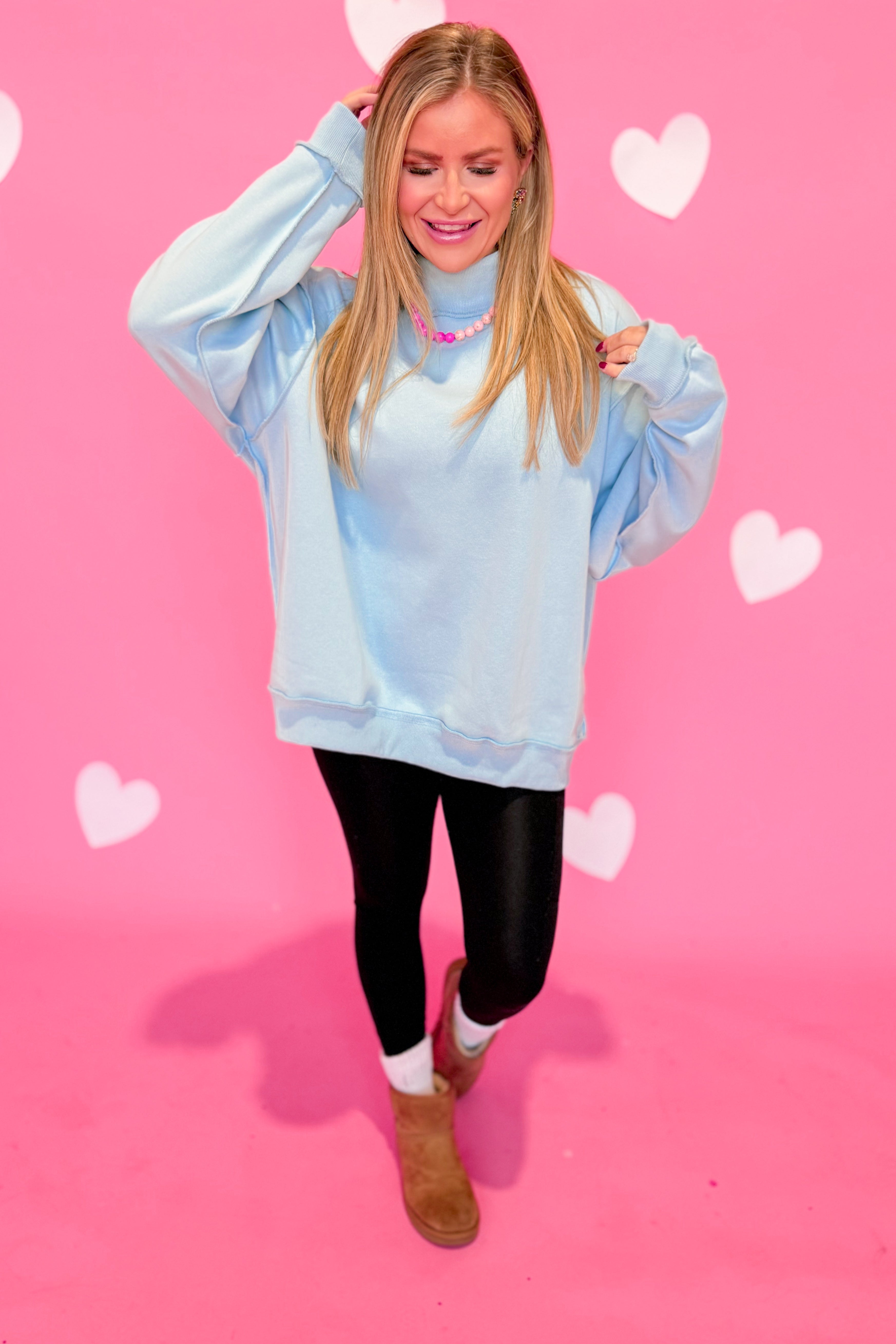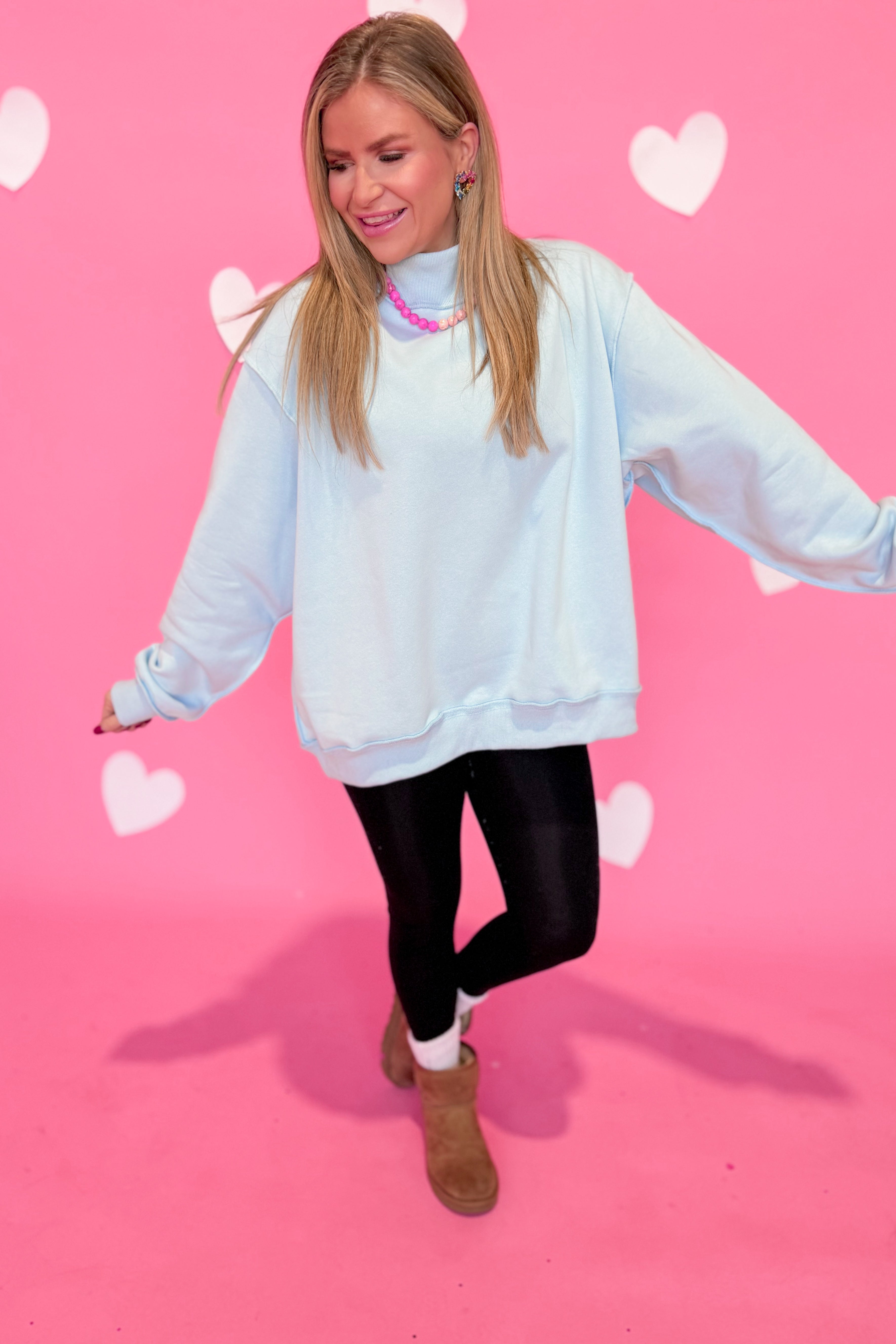 Stay cozy and cool in the Jordi Basic Reversible Pullover! This oversized sweatshirt features a playful mock neck and a solid color design that flips inside out for two looks in one. Perfect for lounging or layering, it’s your new go-to for effortless style and comfort.