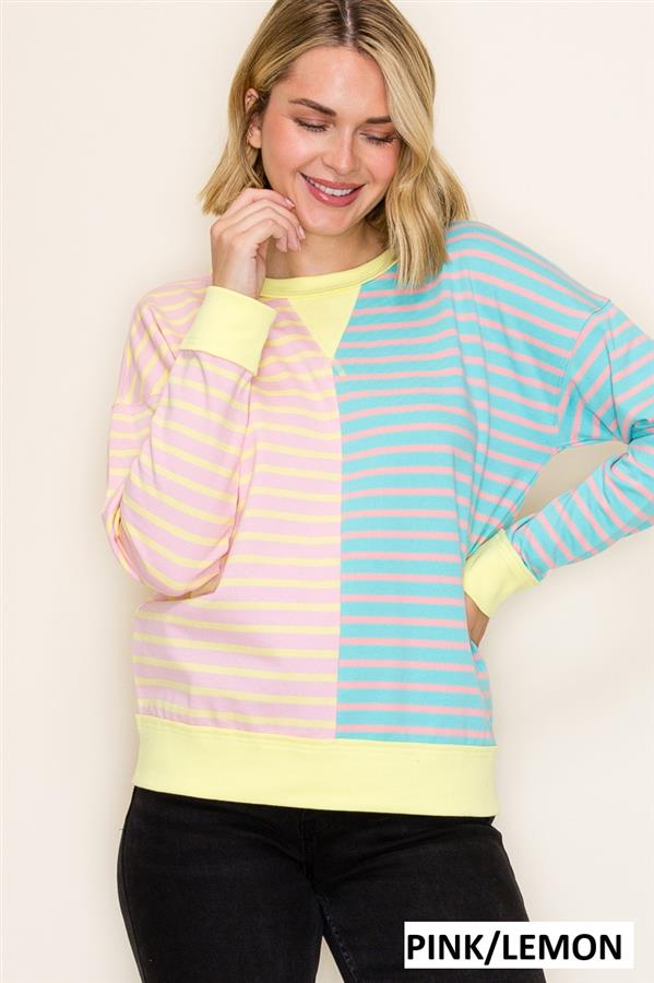 The Kat Striped Casual Pullover by Staccato is your new go-to for effortless comfort. Featuring classic stripes and a relaxed silhouette, this long-sleeve pullover pairs cozy terry cloth with a timeless round neckline. Perfect for lazy days, casual outings, or whenever you want to feel wrapped in comfort without sacrificing style. Layer it, dress it down, or wear it solo—this versatile piece does it all.