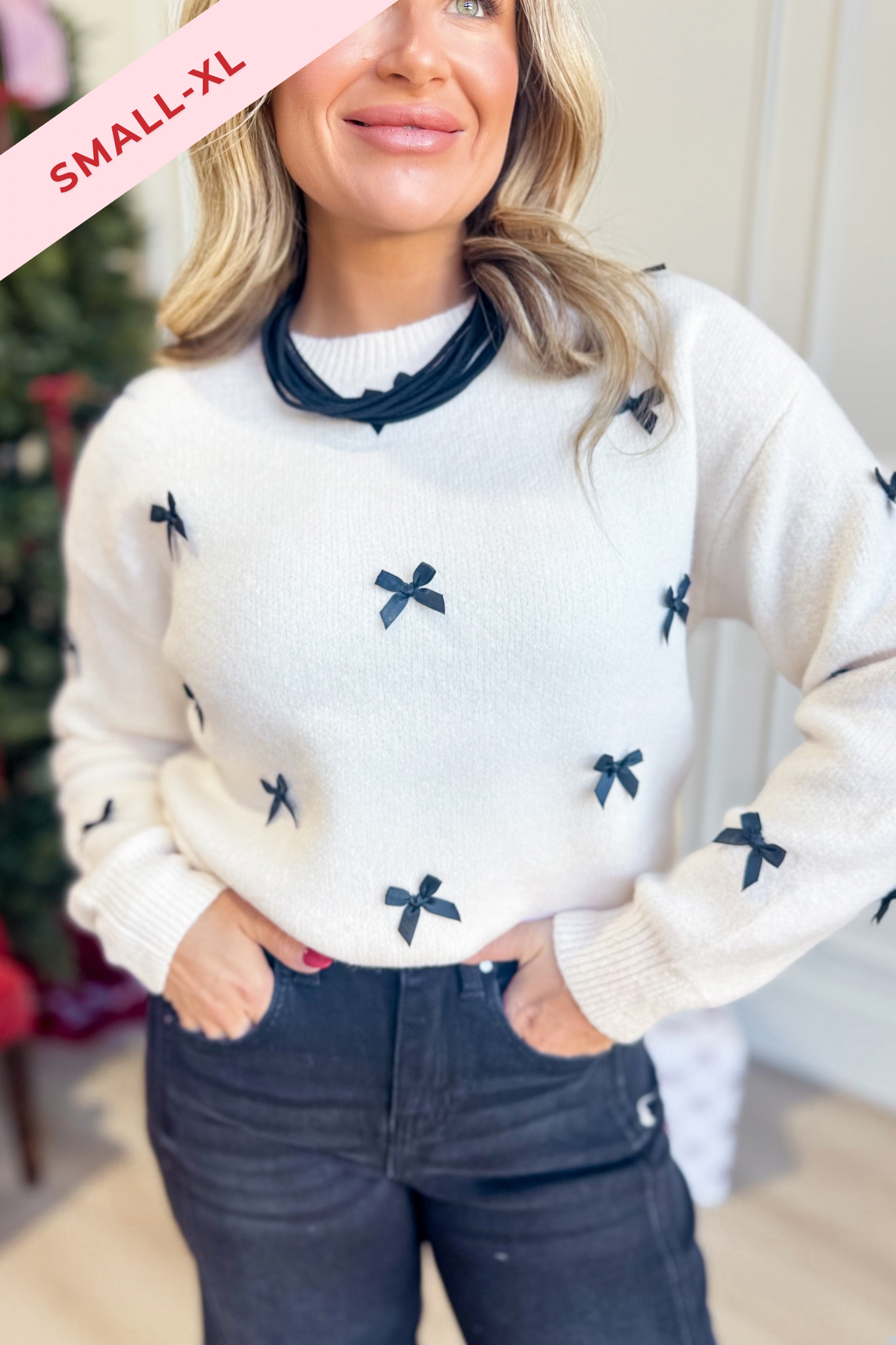 The Louise Bow Detailed Sweater by Staccato adds a charming twist to your cozy wardrobe. Featuring a playful bow detail, long sleeves, and a flattering round neckline, it’s designed with a trendy drop shoulder for relaxed comfort. Perfect for layering or wearing solo, this sweater brings a touch of fun to casual days.