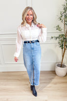 The Sandy Fitted Button Up is your new go-to for effortless style. This FORE piece features long sleeves with a sheer overlay that adds just the right amount of flirtation, while the fitted silhouette keeps things polished. The solid design pairs seamlessly with everything in your closet—dress it up for date night or keep it casual with your favorite jeans. Button-up perfection, served with a side of sass.