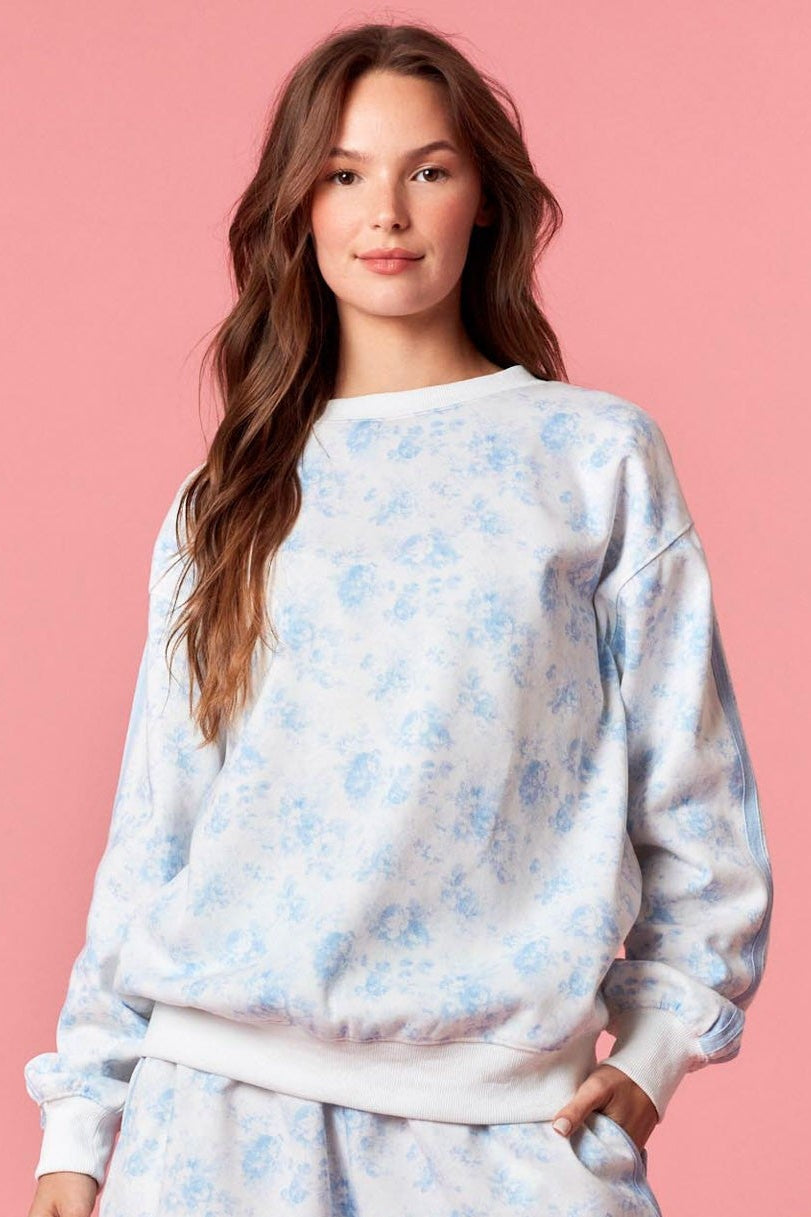 Meet your new go-to cozy essential! The Addison Floral Pattern French Terry Pullover from Peach Love brings effortless charm with its delicate floral design. Featuring a classic round neckline and long sleeves, this pullover wraps you in soft French terry comfort. The double tape line detail adds a playful touch that keeps things interesting. Perfect for lazy days, casual outings, or whenever you want to feel both put-together and totally relaxed. Layer it, style it solo—this versatile piece does it all with personality to spare.