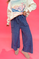 Caris Mineral Washed Upside Down Terry Knit Wide Leg Palazzo Pants