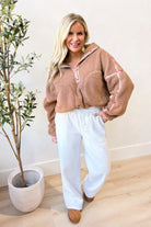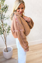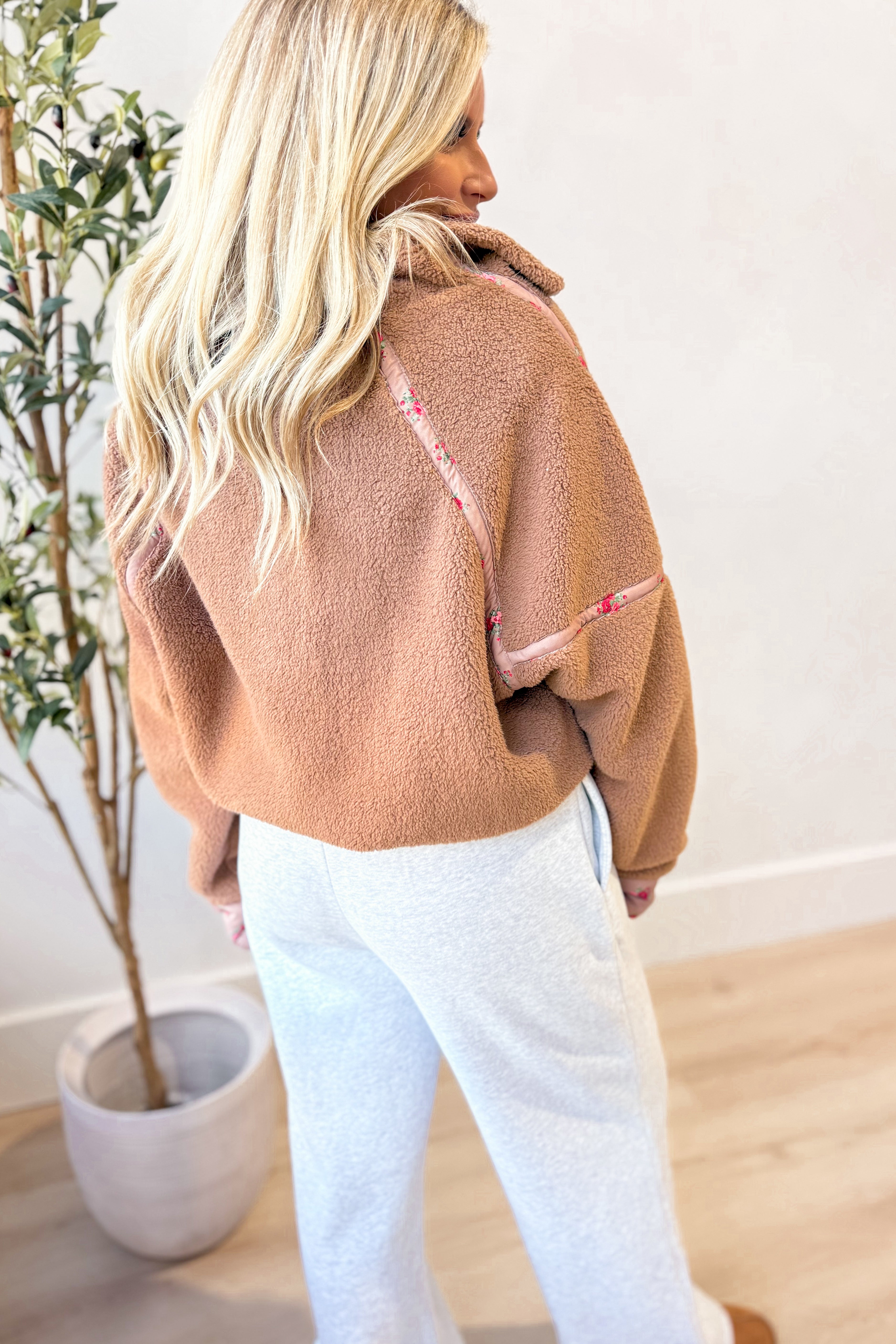 Cozy up in the Emmie Ditsy Floral Binding Edge Sherpa Pullover, where softness meets fun! Featuring a quarter zip and long sleeves with a relaxed drop shoulder, this sherpa pullover keeps you warm and comfy. The charming floral trim adds a playful touch, while handy pockets keep your essentials close. Perfect for chilly days when you want to stay snug and stylish!