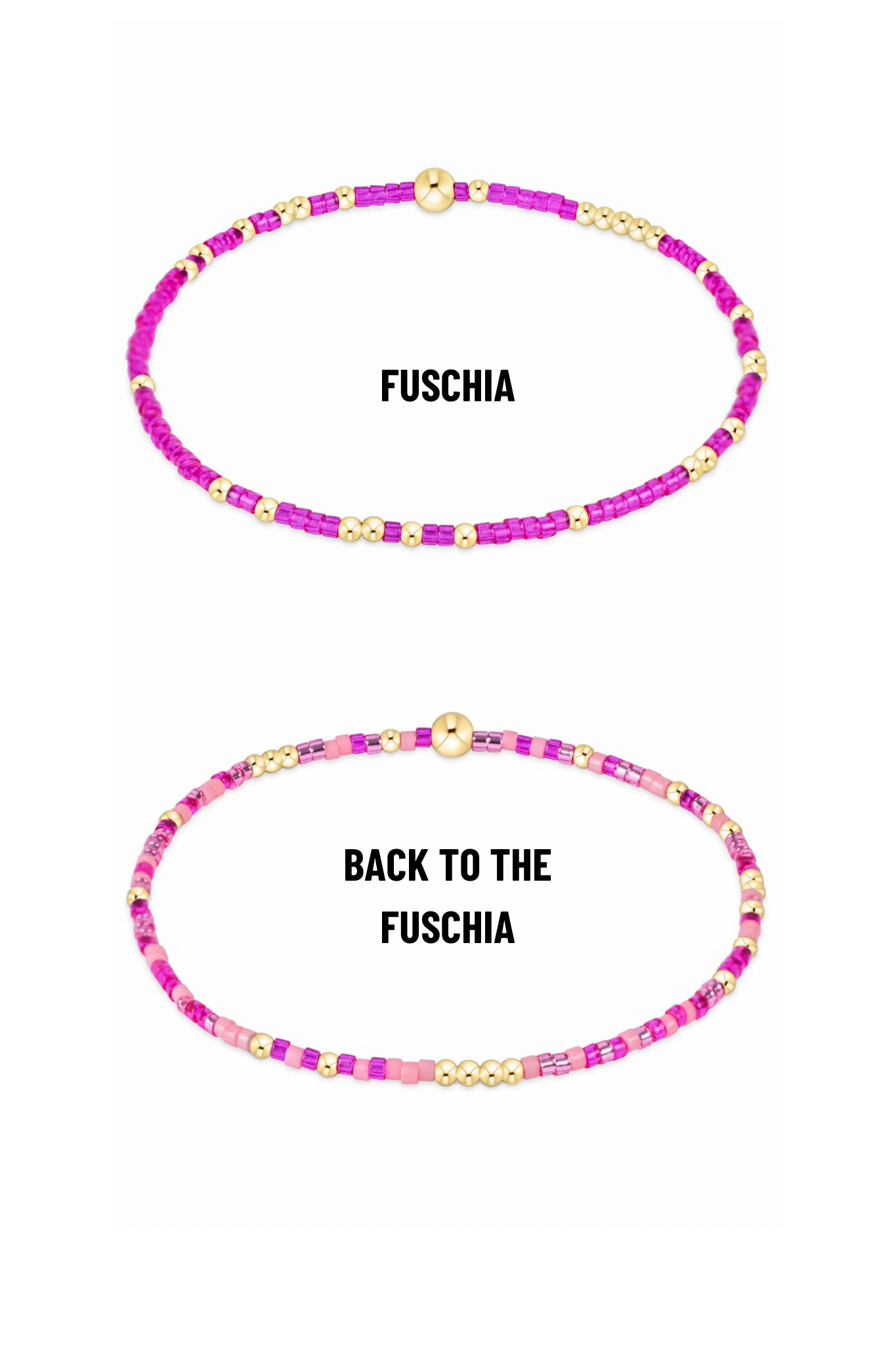 Hand beaded on high performance elastic for a slight stretch to easily roll on and off your wrist