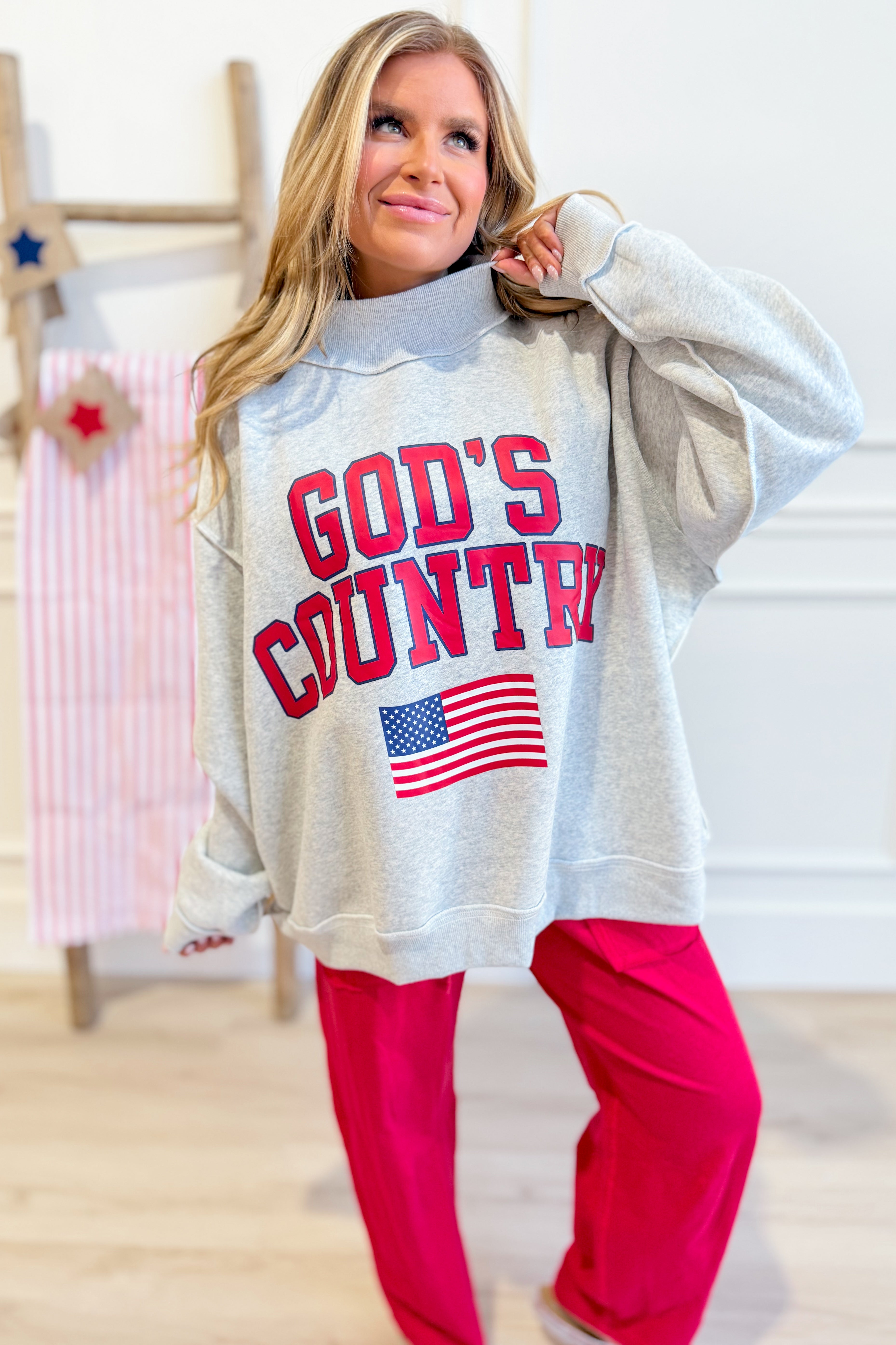 Flip your style with the Bucketlist God's Country Reversible Mock Neck Sweatshirt—two looks in one cozy piece. Rock the classic side one day, switch it up the next. The oversized fit keeps things comfy and effortless, while the mock neck adds that extra touch of cool. Perfect for anyone who can't decide and doesn't want to.