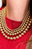 Our Gold 4 Layer 5,8,10,12mm Beaded 16"-18" Necklace from What's Hot is a stunning addition to any jewelry collection. This layered necklace, adorned with meticulously arranged beads, offers a sophisticated and trendy look. Established in 1999, What's Hot is a mom and daughter duo that loves all things fashion. We travel all over the world to find the latest trends in style, color, and pattern. We are dedicated to providing you with fashionable yet affordable accessories. Thank you for choosing What's Hot.