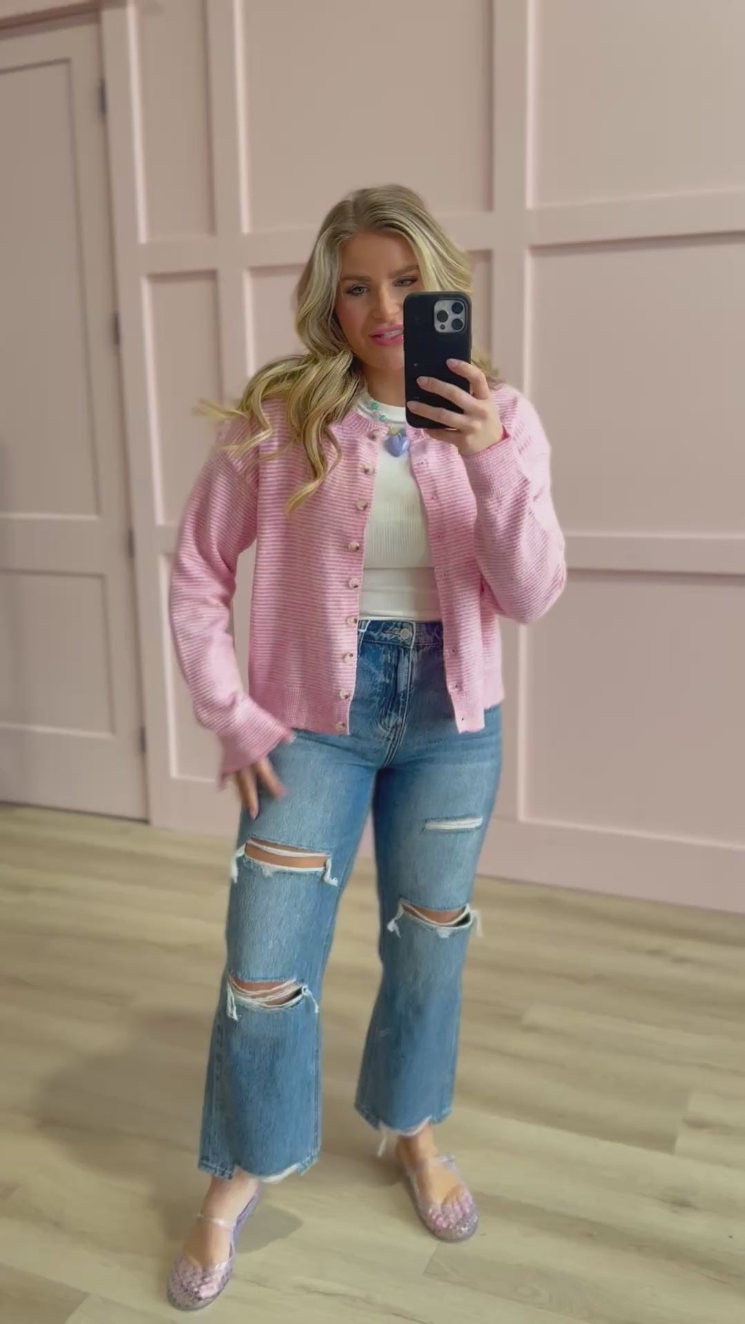 Introducing the Jameson Striped Button Up Cardigan—your new go-to layer for effortless style! This Wishlist favorite features playful stripes and a buttery soft fabric that feels like a cozy hug. The relaxed drop shoulder silhouette and round neckline create an easy, laid-back vibe, while the button-up front lets you style it open or closed. Perfect for throwing over your favorite tee or dress, this cardigan is the versatile piece your wardrobe's been waiting for.