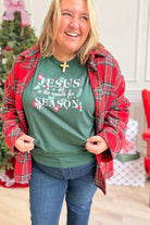 Celebrate the season with the Jesus is The Reason Long Sleeve by Jadelynn Brooke. Featuring a cozy crew neck and vibrant DTF print, this holiday tee combines comfort and festive cheer. Available in a range of sizes from S to 2X, it’s perfect for spreading joyful vibes wherever you go.