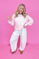 Rock your faith with style in this cozy Dash Forward sweatshirt. Featuring a bold puff print design that pops against classic camo, it's the perfect blend of spiritual vibes and streetwear edge. The comfortable crewneck and long sleeves make it ideal for layering through any season. A playful reminder that love conquers all, wrapped in comfort you'll want to wear every day.