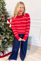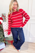 Add a fun twist to your cozy wardrobe with the Kylie Textured Striped Sweater by Staccato. Featuring playful striped details and a comfy round neckline, this long-sleeve raglan sweater brings both style and comfort. Perfect for layering or wearing on its own, it’s your new go-to for relaxed days with a splash of charm.