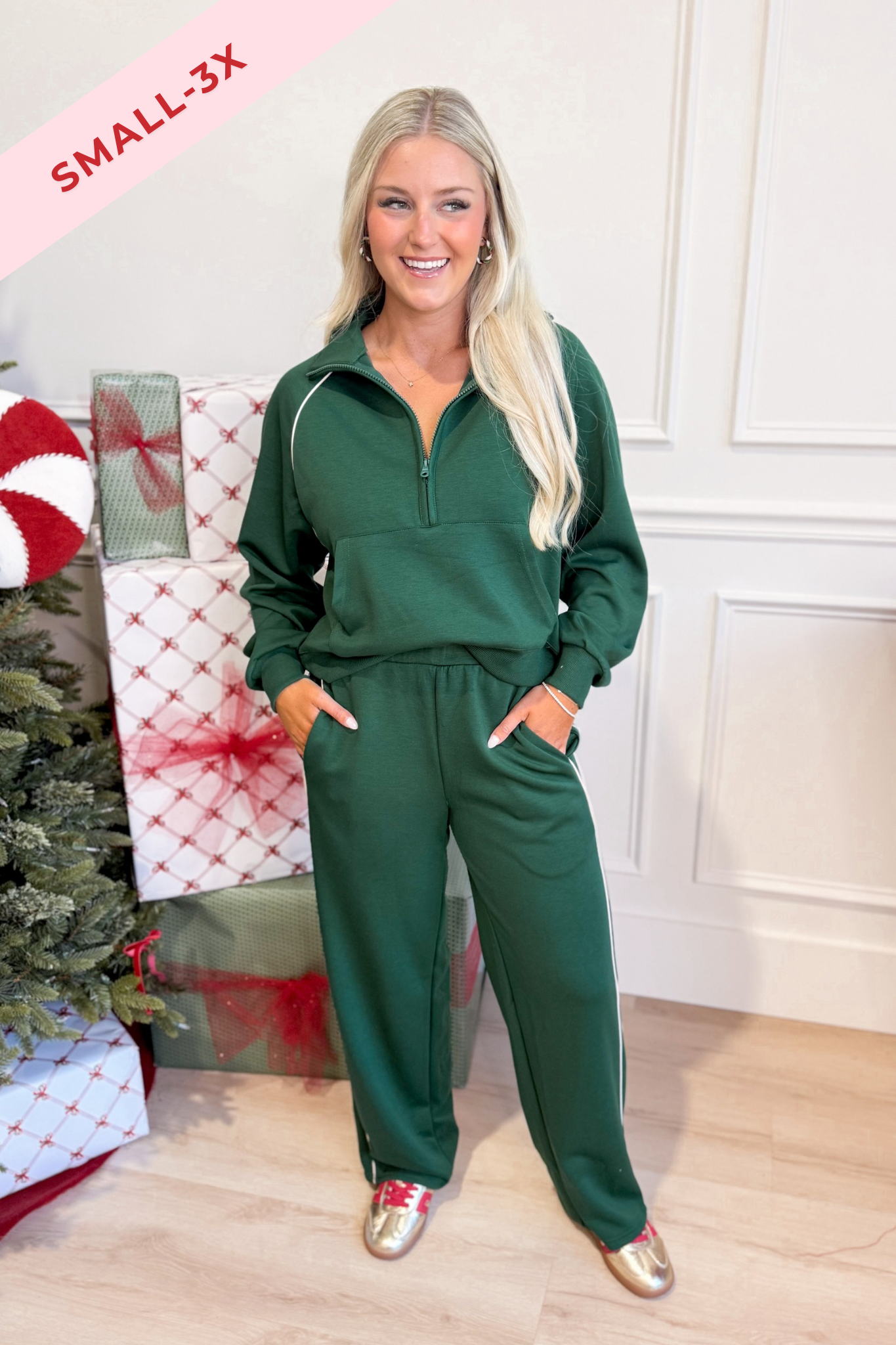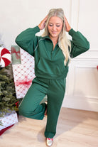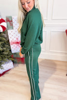 Step into comfort with the Livvy Half Zip Piping Detail Pant Set! This playful set features a solid-colored quarter zip top with crisp white trim and long sleeves for cozy style. The straight-leg pants offer a relaxed fit and handy pockets to keep your essentials close. Perfect for lounging or casual outings, this set blends ease and flair effortlessly.