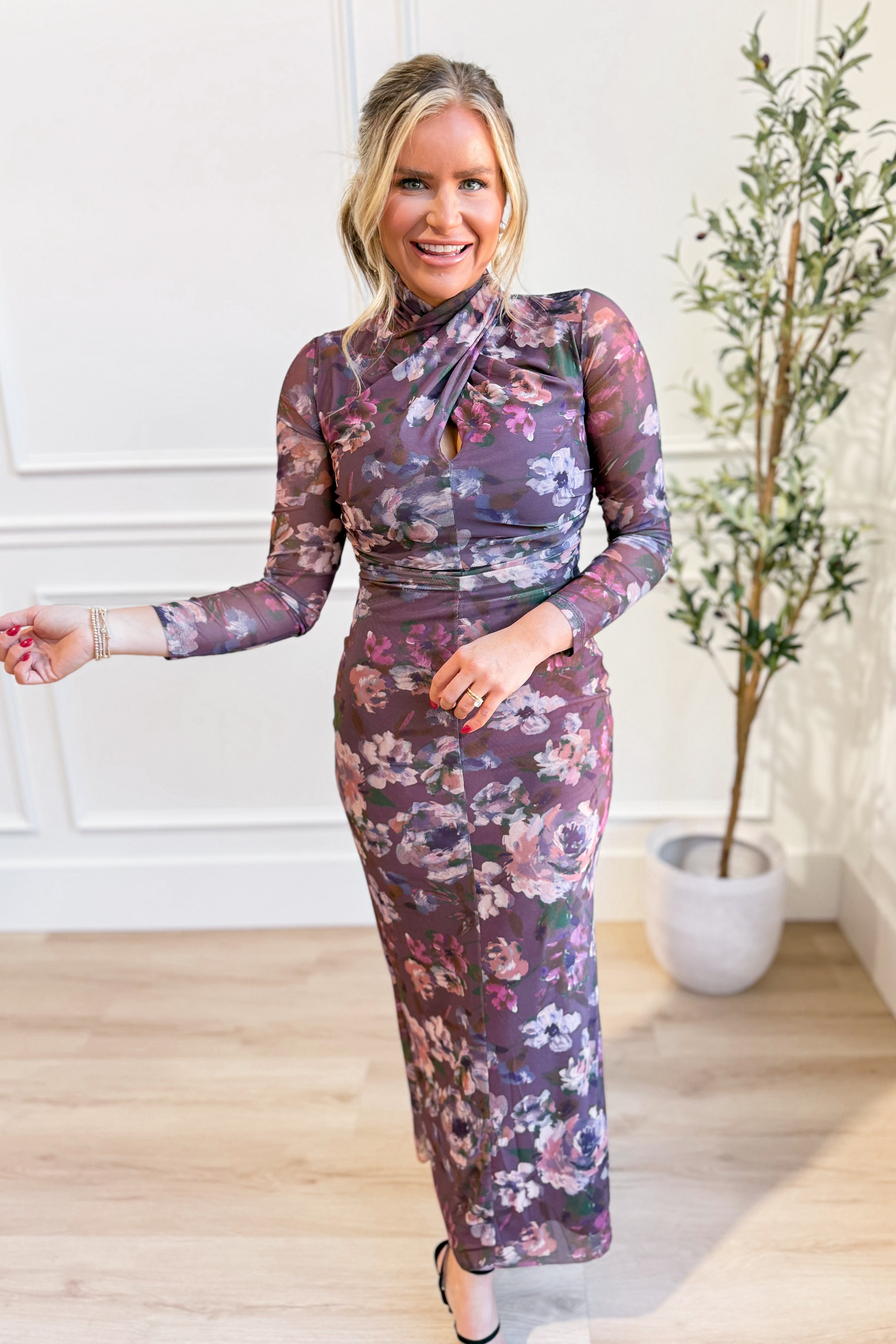 Step into spring with the FORE Loran Mesh Floral Midi Dress! This playful dress features a delicate floral pattern, a high neck, and long sleeves that add a touch of charm. The cinched waist flatters your silhouette, while the 55" length gives it a graceful midi flow. Perfect for any occasion where you want to feel flirty and fabulous.