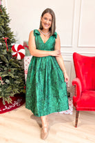Step into festive fun with the Lynette Textured Sleeveless Holiday Dress by entro. Featuring a flattering V-neck and eye-catching textured print, this dress brings a playful touch to your holiday wardrobe. Its sleeveless design keeps you comfortable while turning heads at every celebration.