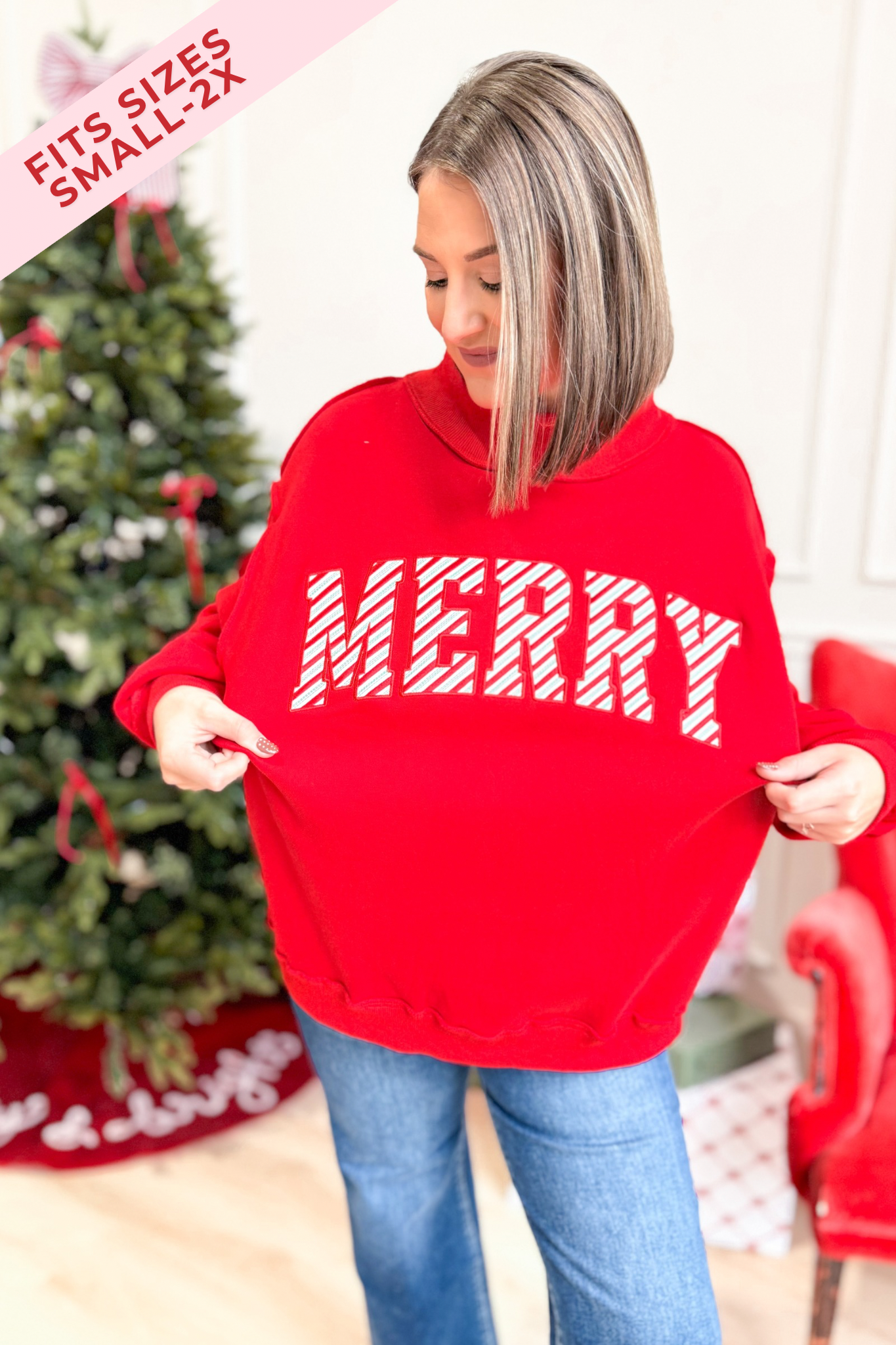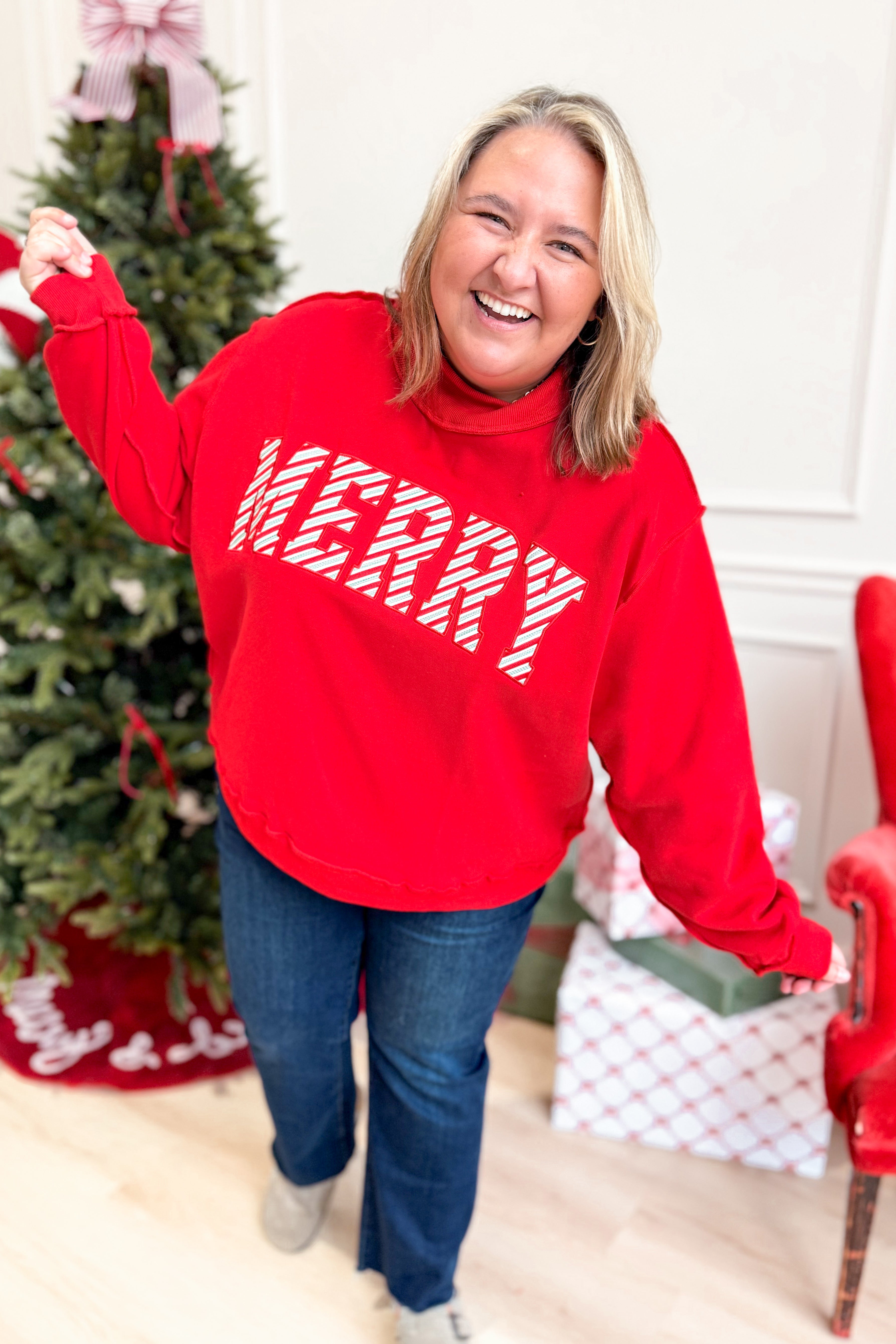 - "Merry" embroidered