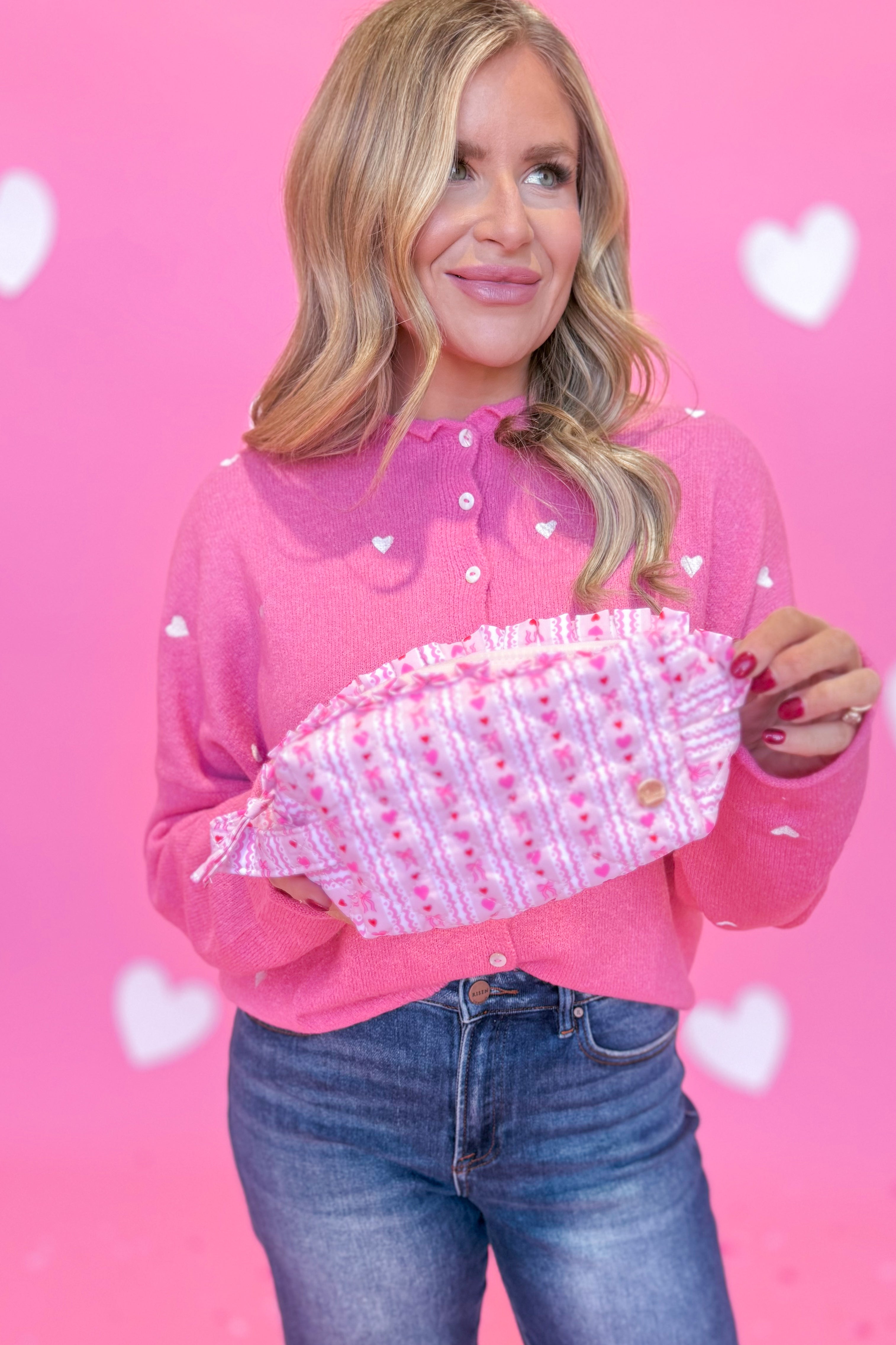 Simplify your routine with our Glam & Go Quilted Cosmetic Bag. Crafted from soft, quilted fabric with a sturdy handle, this bag features an all-around gold double zipper for easy access. Inside, the signature darling wipeable interior lining keeps everything neat and organized.