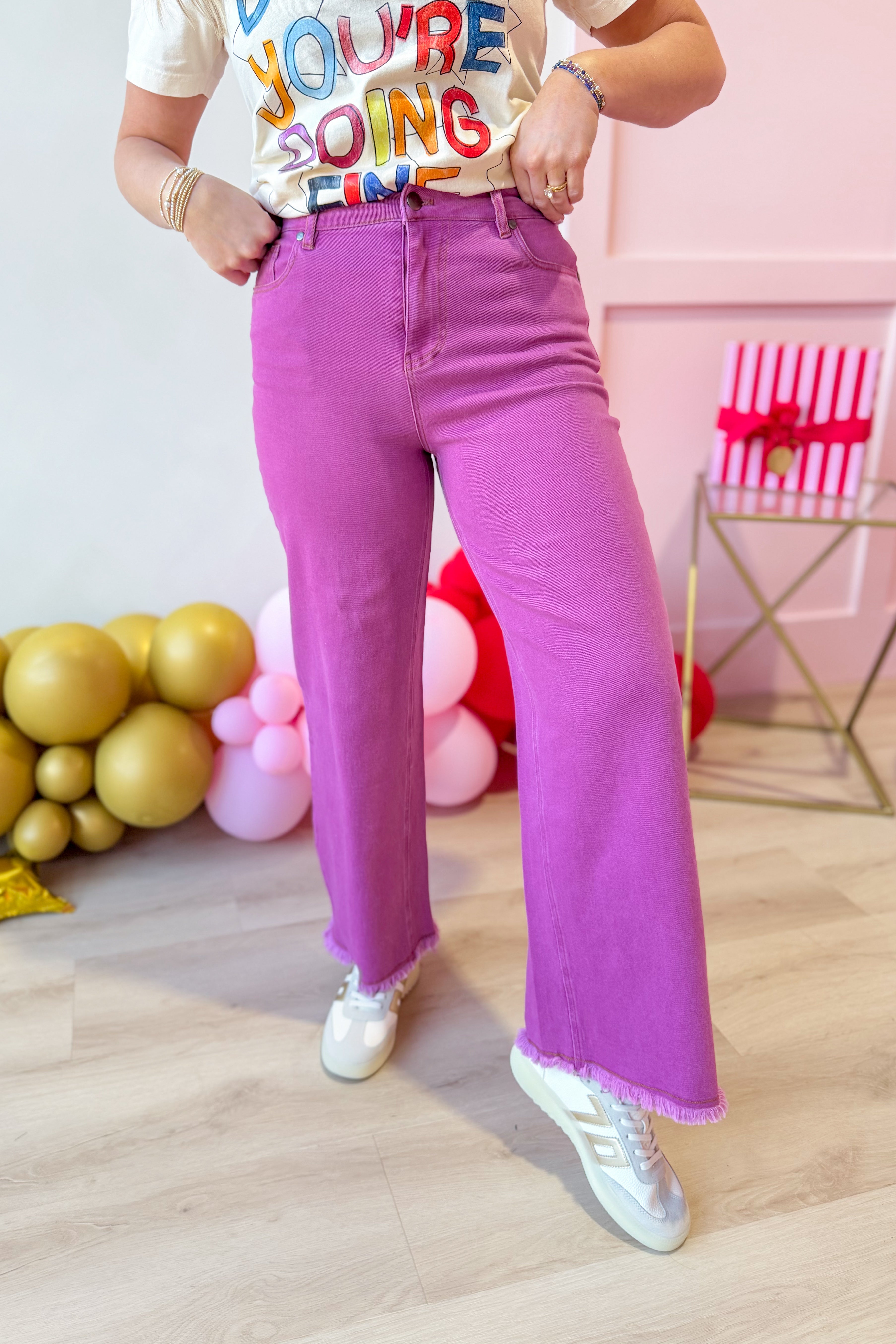 Introducing the Sadie Washed Frayed Bottom Pant—your new go-to for effortless style! These wide-leg beauties feature a perfectly worn-in washed finish and playfully frayed hems that add just the right amount of edge. With functional pockets (because who doesn't love them?) and a reliable button closure, they're as practical as they are chic. True to size and available in S(4-6), M(8-10), and L(12-14), the Sadie pairs seamlessly with everything from crop tops to oversized tees. Comfort meets cool in this wardrobe essential.