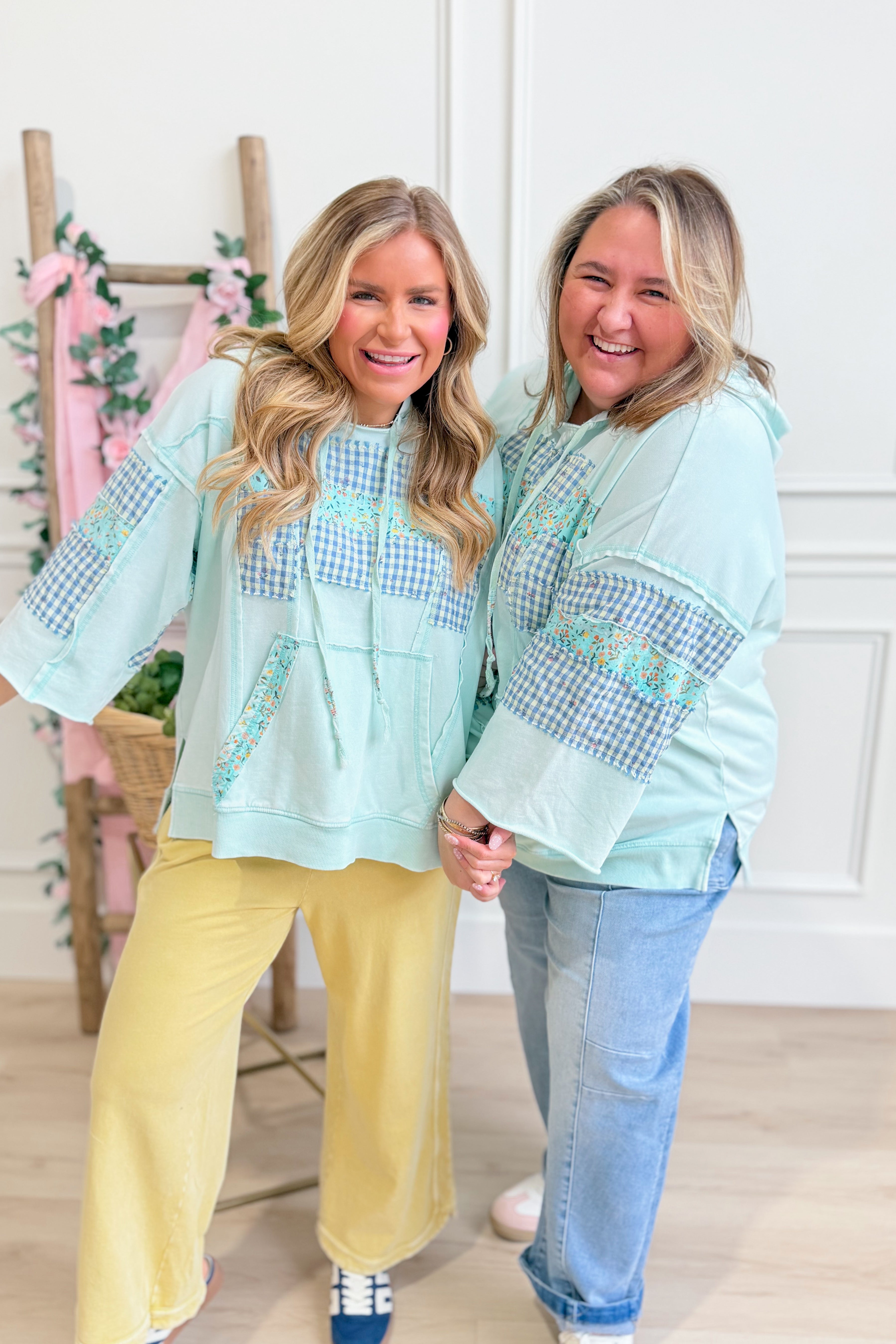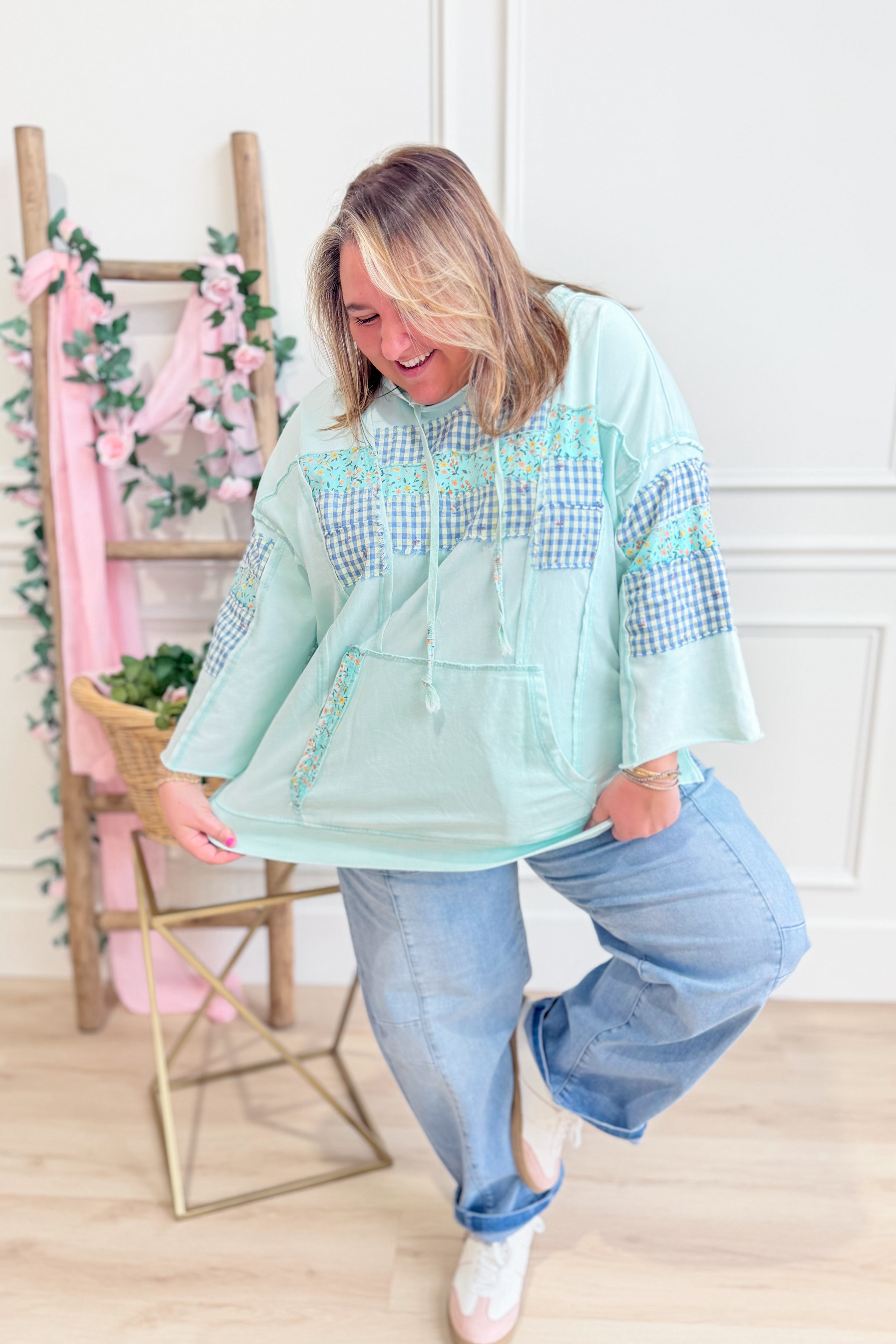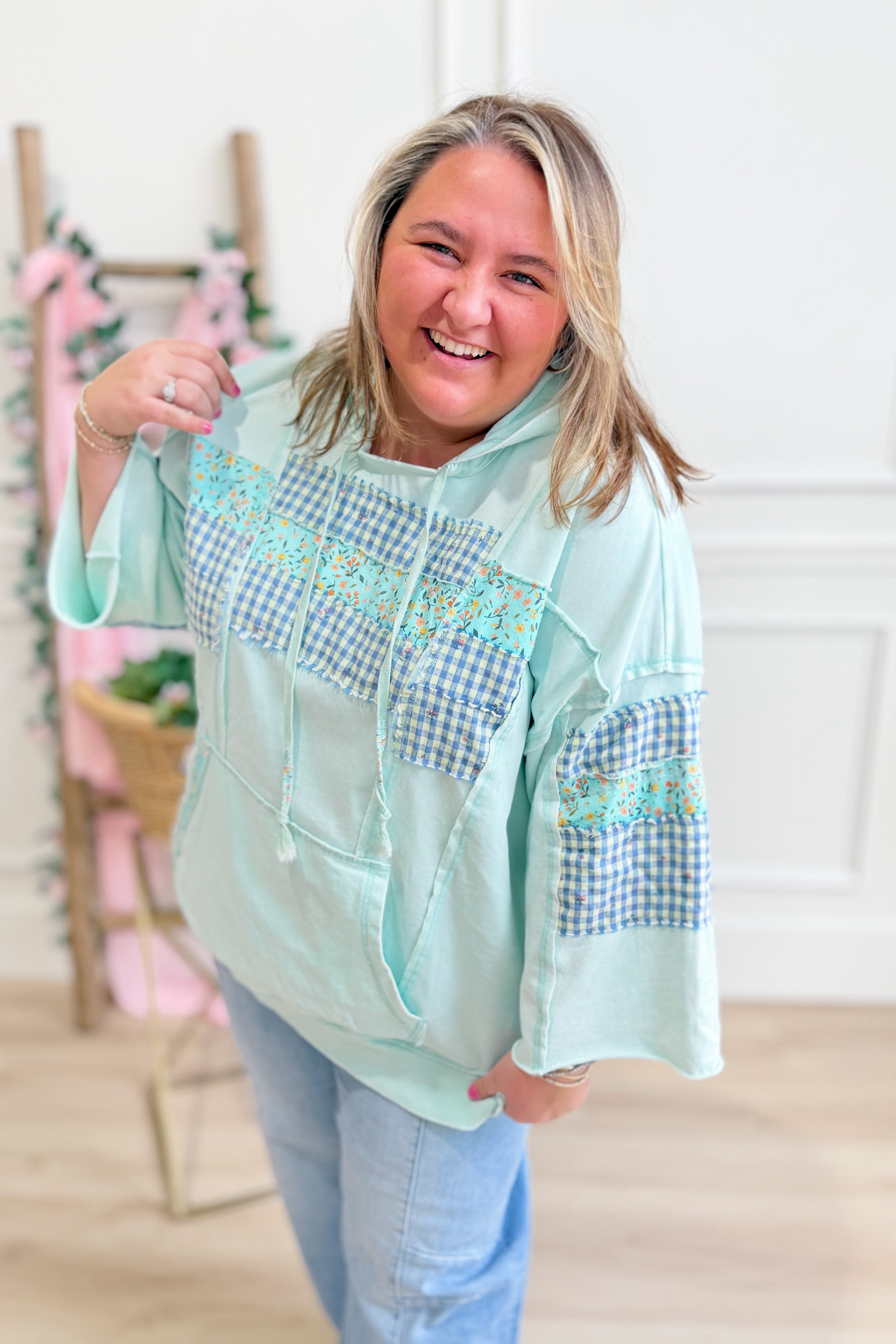 Sally Mixed Pattern Hooded Pullover