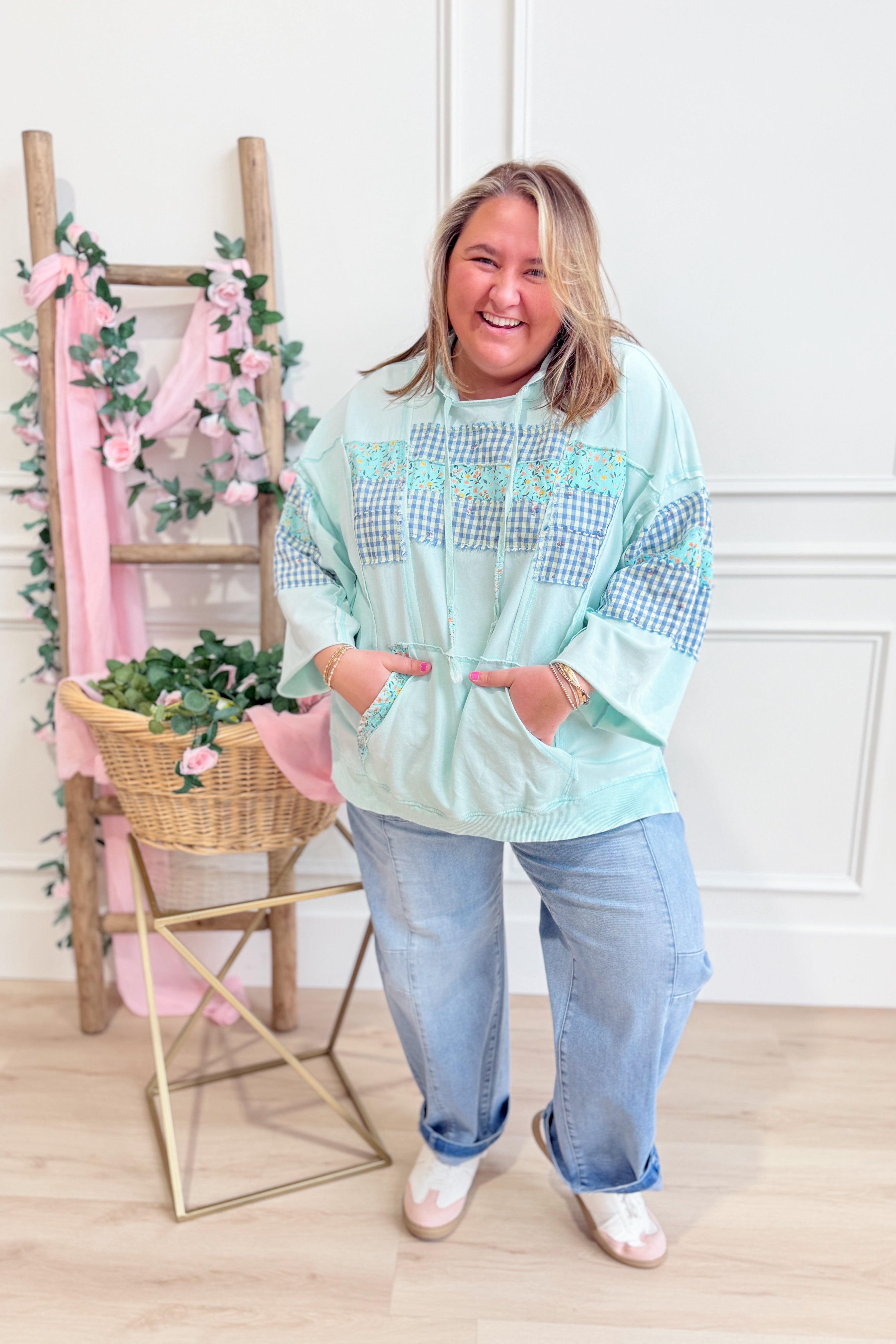 Stay cozy in style with the Sally Mixed Pattern Hooded Pullover by Easel. This laid-back long-sleeve hoodie features a fun mixed pattern that brings personality to your everyday wardrobe. Practical pocket detail keeps your essentials within reach, while the relaxed fit makes it perfect for lounging, running errands, or casual hangouts. A versatile piece that effortlessly transitions from day to night.