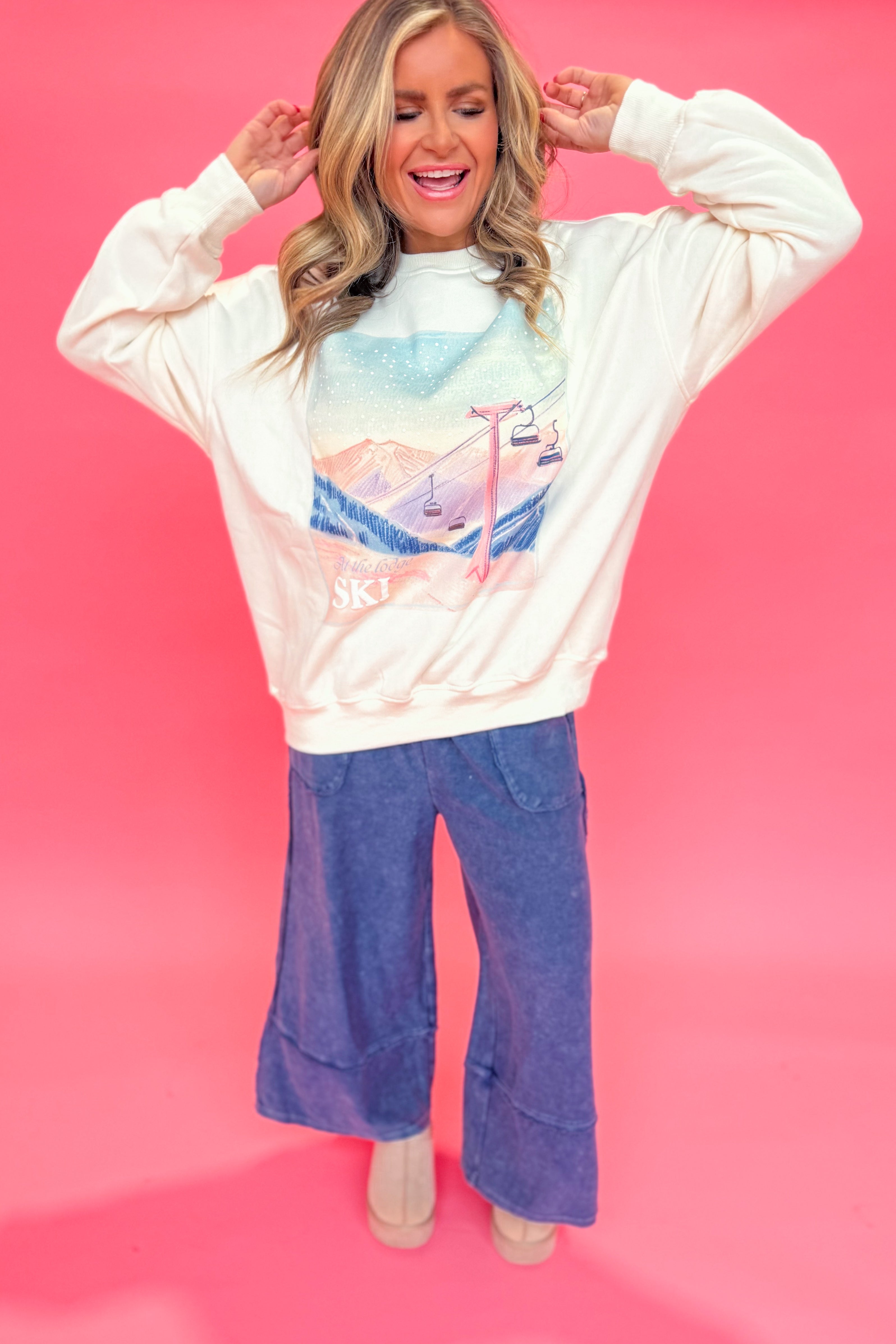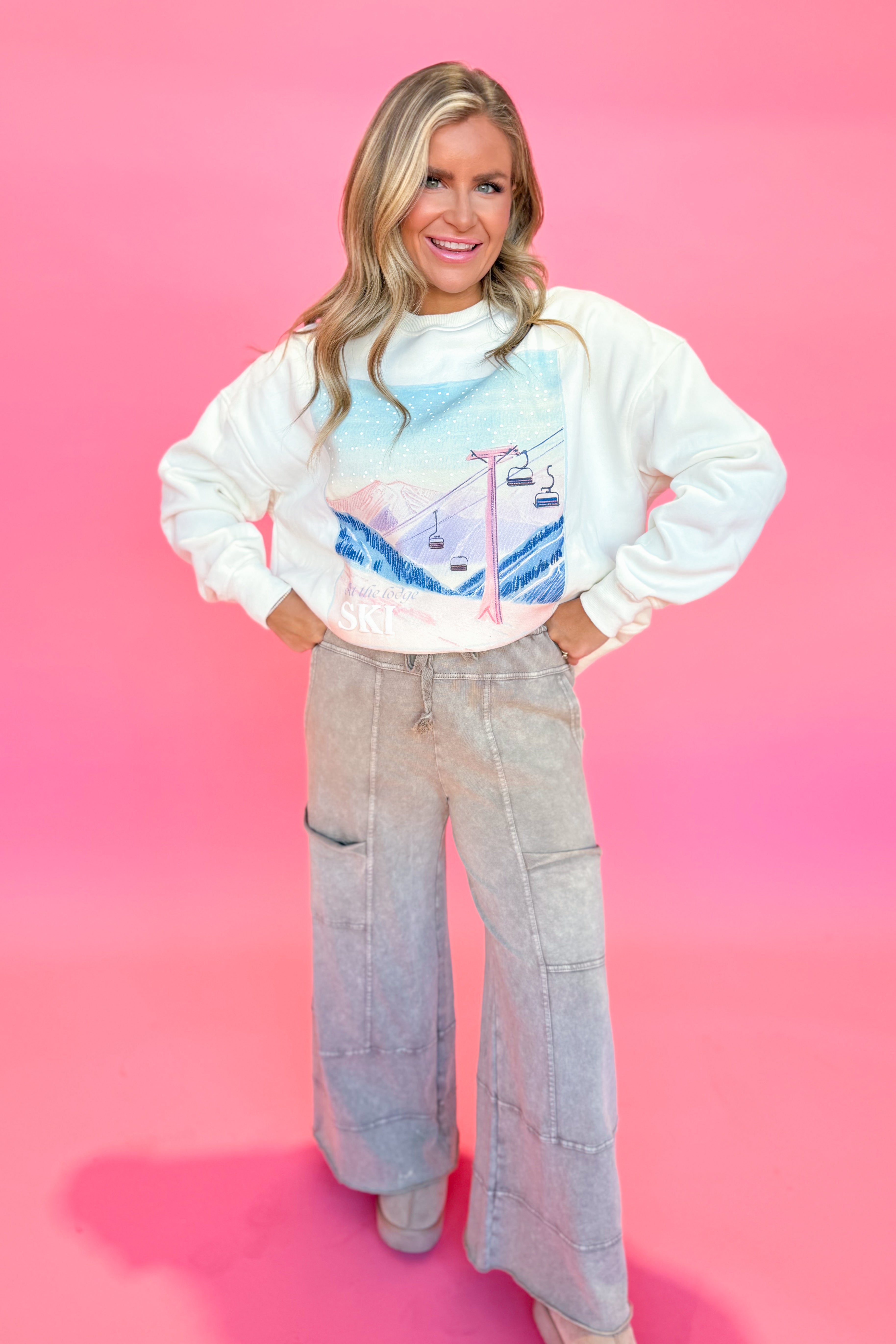 Sunkissed Coconut At The Lodge Ski Embroidered Crewneck Sweatshirt