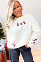 Get cozy in this playful crewneck sweatshirt featuring a charming gingerbread cookie embroidery. With its solid color and long sleeves, it’s perfect for chilly days when you want to feel warm and festive. Whether you’re baking or just dreaming of sweet treats, this sweatshirt brings a sprinkle of holiday cheer to your everyday style.
